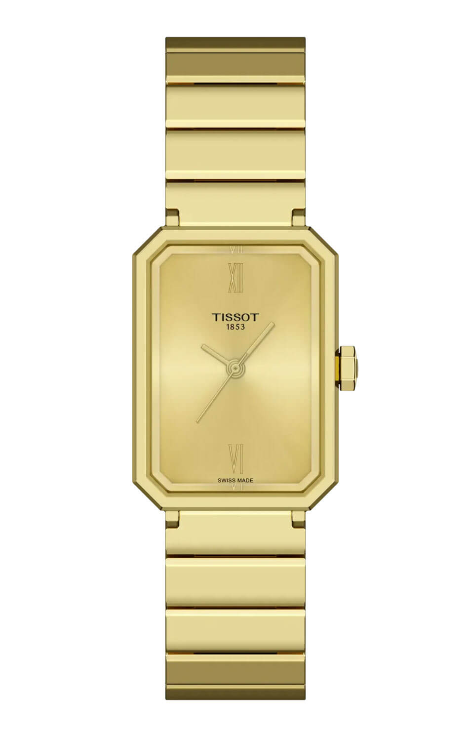 Pouzdro o rozměru 21,80 mm a náramek jsou vyrobeny z ušlechtilé oceli potažené zlatou vrstvou PVD, což zaručuje dlouhotrvající lesk a odolnost. Zlatavě šampaňský číselník s efektem slunečních paprsků vytváří výrazný kontrast s pozlacenými indexy a celek doplňuje švýcarský quartzový strojek vybavený ukazatelem End Of Life, který upozorňuje na nutnost výměny baterie. Obdélníkové hodinky Tissot T160.110.33.023.00 na náramku jsou volbou, která v sobě spojuje estetiku a spolehlivost ve stejném poměru.