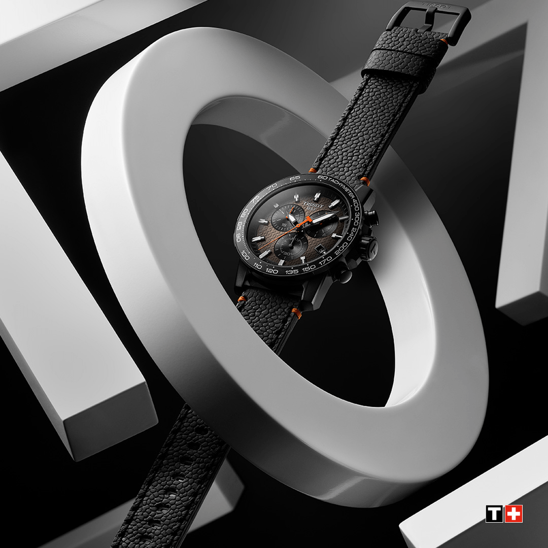 Prezentovaný model se vyznačuje dynamickým a sportovním vzhledem. Šedý gradientní číselník je oddělen čirým černým tachymetrickým kroužkem, který slouží k výpočtu průměrné rychlosti na vzdálenost 1 kilometru. Černé ocelové pouzdro s PVD povlakem o průměru 45,50 mm . Celek je uchycen kvalitním černým koženým páskem se vzorem připomínajícím texturu basketbalového BALLe a jemným akcentem v podobě oranžového prošívání. Řemínek je vybaven systémem rychlé výměny, stačí posunout jazýčky vyčnívající ze spodní části a řemínek odejmout nebo připevnit k pouzdru hodinek, a to bez použití nářadí. Uvnitř je švýcarský quartzový chronografický Machineek - přesný kalibr ETA G10.212. Celá byla utěsněna do třídy 100 metrů, což umožňuje volné plavání a dokonce i rekreační potápění. Hodinky Tissot Supersport Chrono budou perfektní pro muže, kteří hledají pevné hodinky s jasným, mužným charakterem.