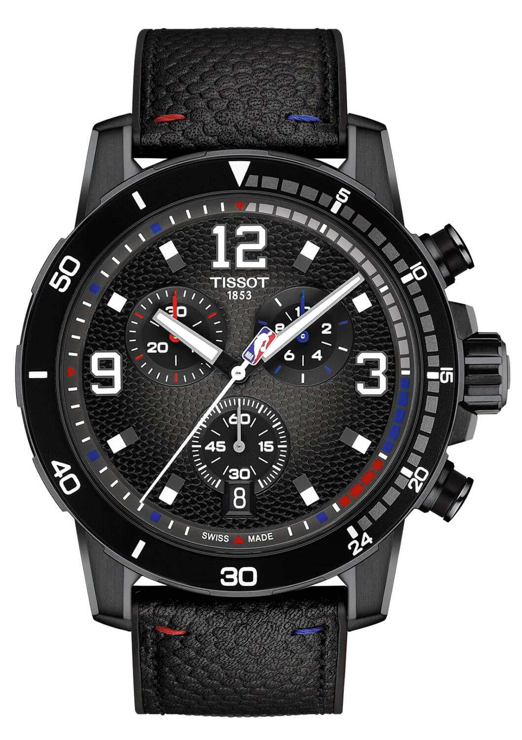 Ciferník hodinek Tissot Supersport NBA Special Edition T1256173706700 také odkazuje na svět basketbalu. Je gradientní v antracitové barvě s texturou připomínající povrch basketbalového míče. Indexy ve tvaru čísel připomínají čísla na dresech hráčů NBA, což dodává celku charakter. Hodinky jsou vybaveny přesným chronografem, který umožňuje přesné měření času – klíčová funkce jak ve sportu, tak v každodenním životě. Celek pohání švýcarský quartzový strojek s funkcí End Of Life, která upozorní na nutnost výměny baterie. Hodinky Tissot NBA na koženém řemínku nejsou jen stylovým doplňkem, ale také funkčním nástrojem, který splní očekávání každého fanouška basketbalu.