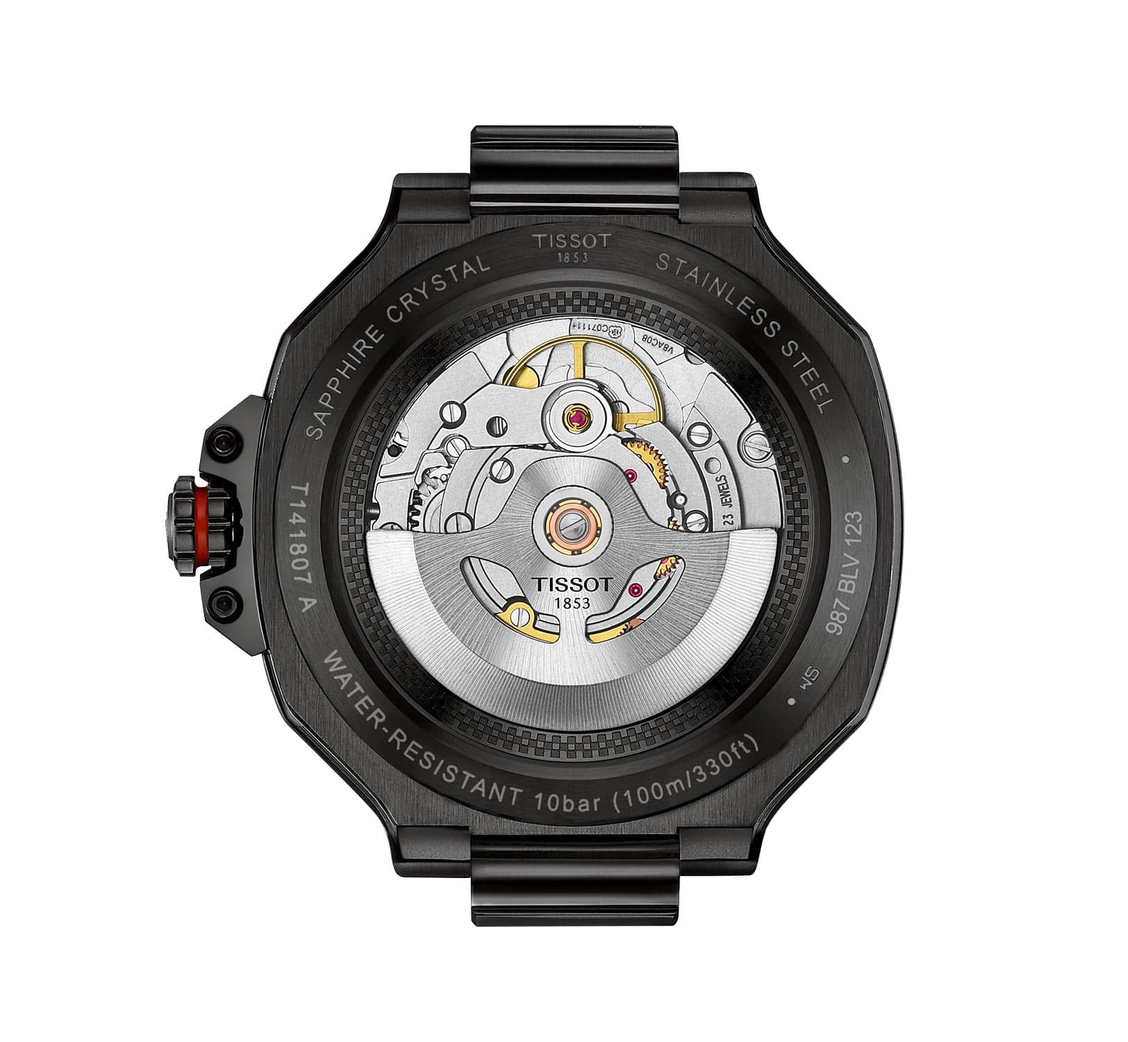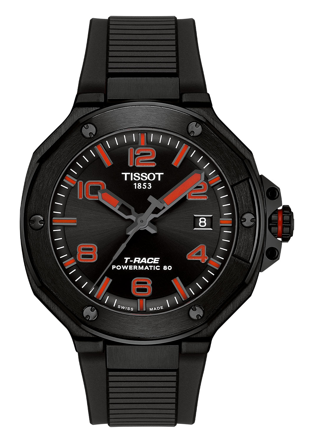 Pánské hodinky Tissot T-Race Powermatic 80 T1418073705700 jsou dostupné ve velikosti 41 mm. Černé pouzdro z nerezové oceli PVD je obohaceno o detaily inspirované světem motocyklů. Černá luneta se šesti ozdobnými šrouby a krytka korunky jsou inspirovány brzdovým kotoučem a jeho třmenem. Zadní strana krytu představuje průhledný kryt, který umožňuje sledovat činnost mechanismu. Hodinky Tissot mají třídu vodotěsnosti do 100 metrů, což zaručuje bezpečný chod mechanismu při plavání. Výrobce své automatické hodinky TISSOT T-Race spároval s pružným gumovým páskem, který zajišťuje pohodlí při nošení.