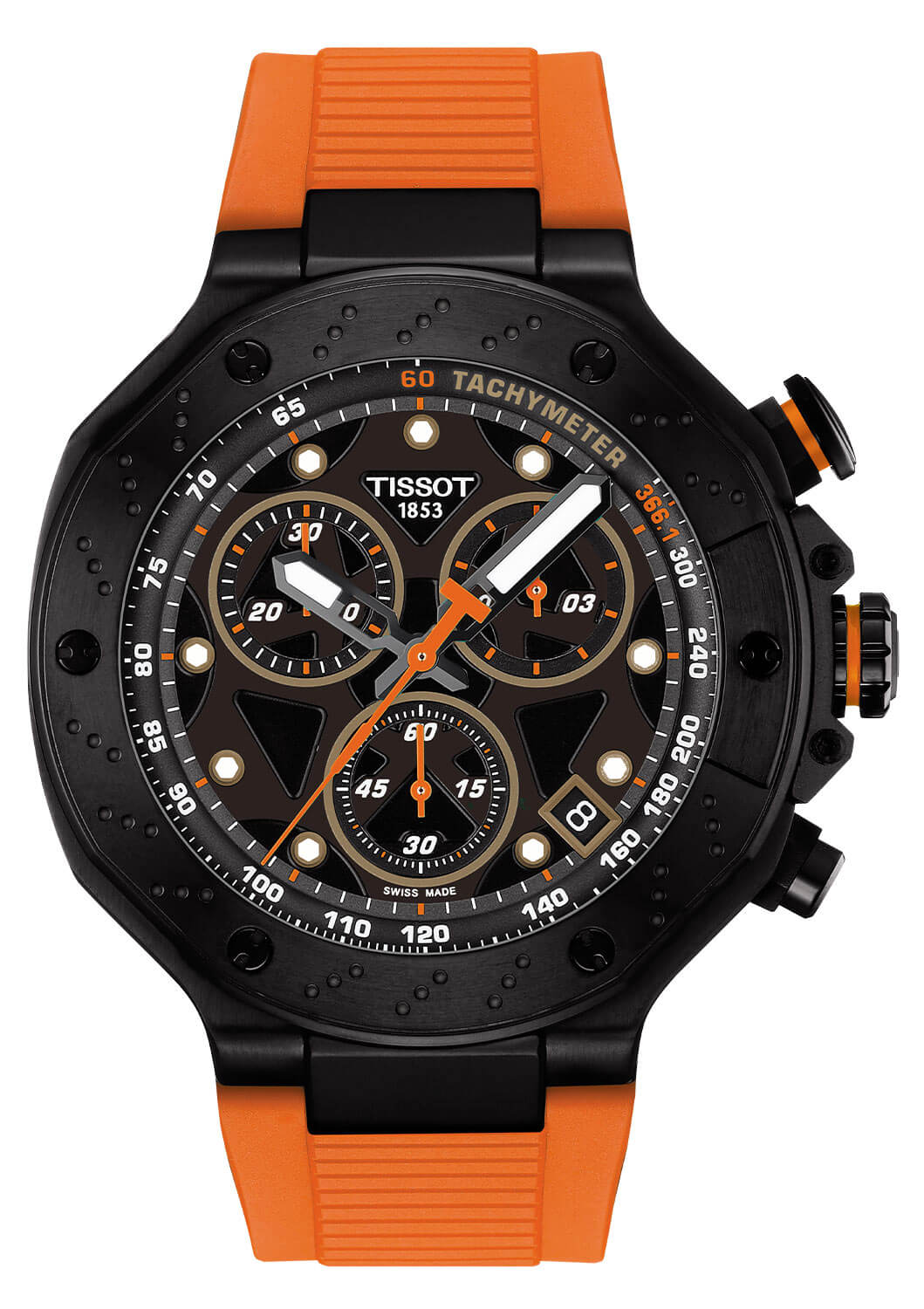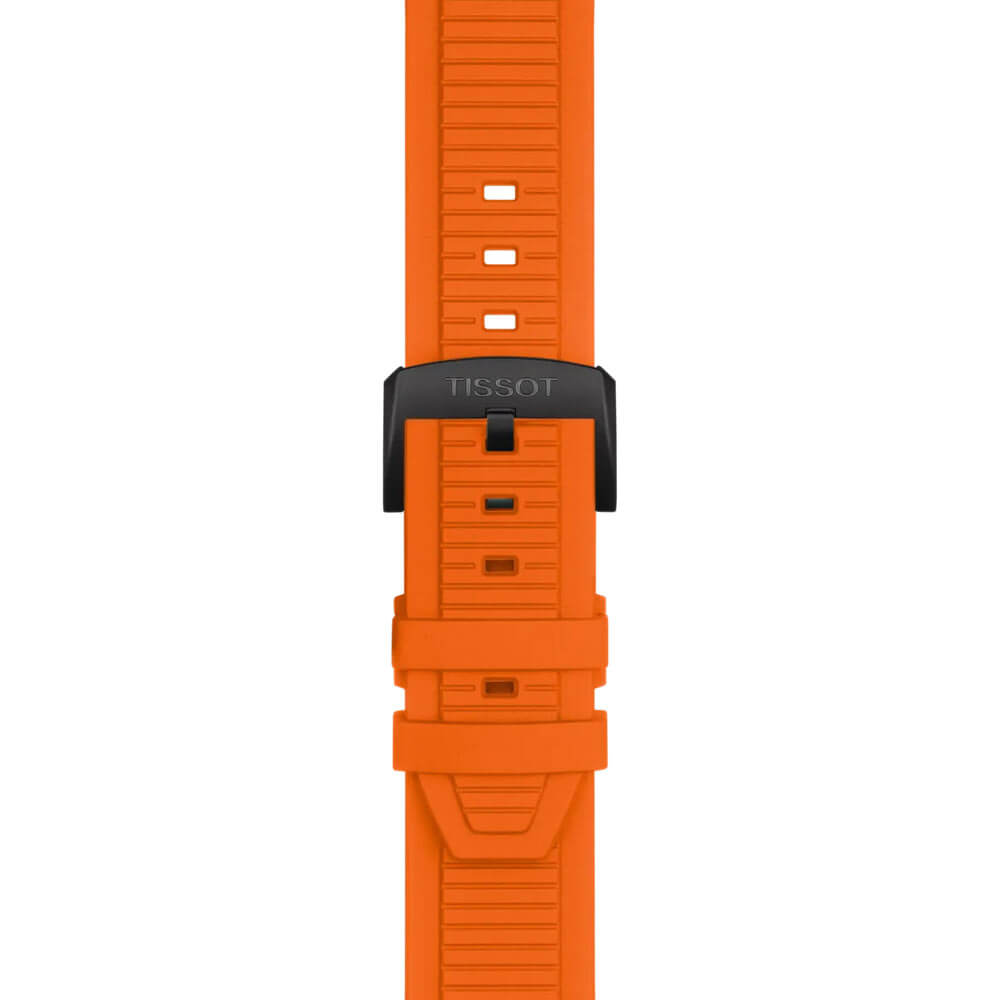 Celkový dojem doplňuje oranžový, elastický gumový řemínek s pohodlnou sponou, který dodává hodinkám moderní charakter a zajišťuje pohodlí při nošení během intenzivních tréninků a každodenní aktivity. Tissot T‑Race Chronograph je ideální volbou pro muže, kteří ocení sportovní styl, preciznost a jedinečné detaily – dokonalý doplněk sportovní garderoby a prestižní dárek pro každého nadšence motocyklů.