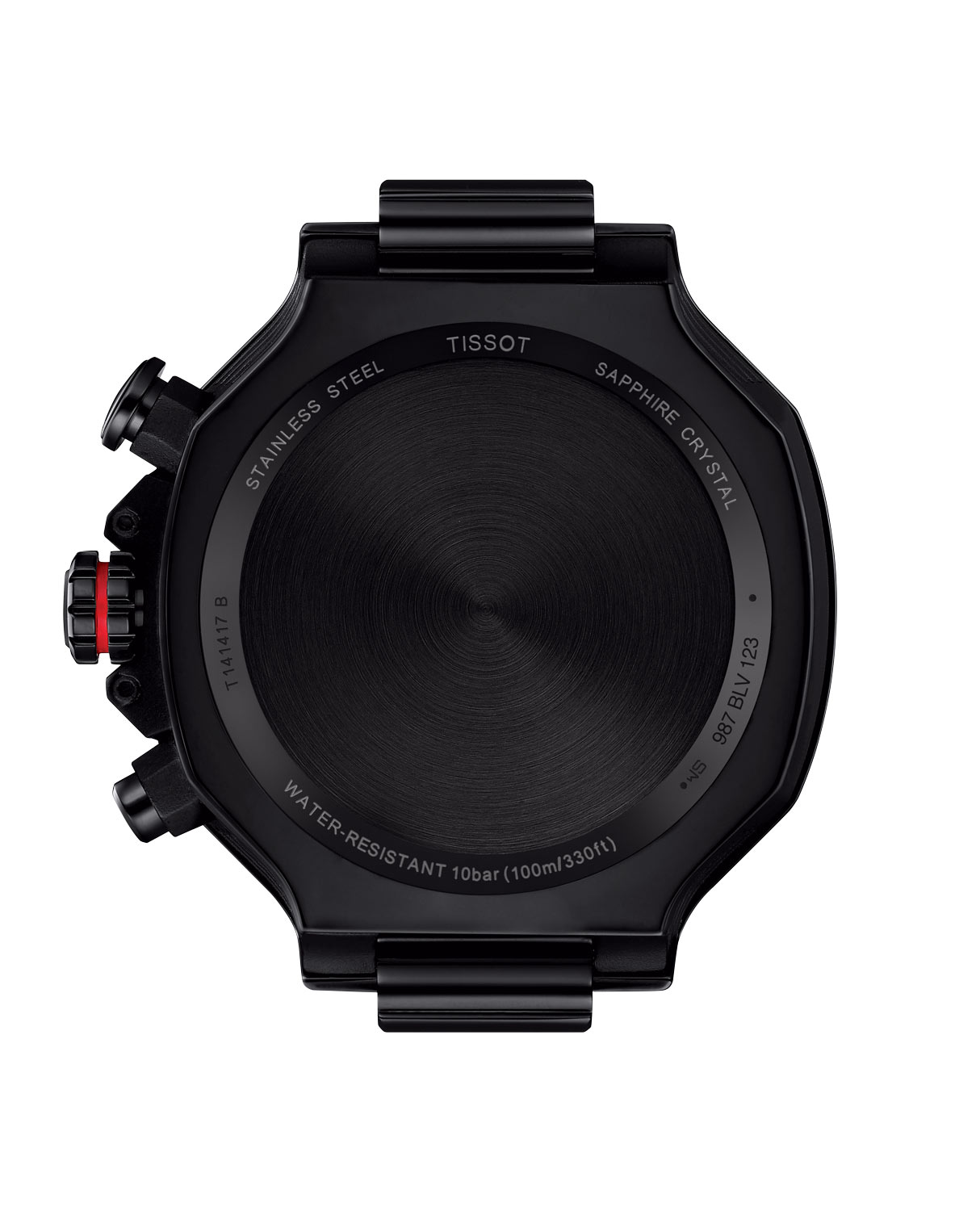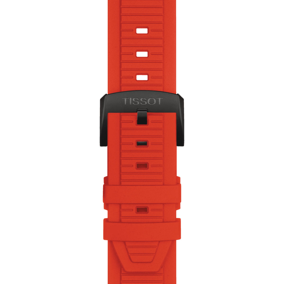 Švýcarské hodinky Tissot T1414173706101 s chronografem se vyznačují 45mm pouzdrem z nerezové oceli 316L, pokrytým černou PVD vrstvou, která mu dodává surový, ale stylový vzhled. Ciferník v tmavě šedé barvě harmonizuje s ručičkami a indexy, vytvářejícím sportovní a moderní vzhled. Dodatkem je safírové sklo odolné proti poškrábání s antireflexní úpravou, které zajišťuje trvanlivost a jasnost čitelnosti za všech podmínek. Sportovní estetiku dotváří červený silikonový řemínek s pohodlnou sponou, který nejen skvěle vypadá, ale také zajišťuje komfort při nošení.