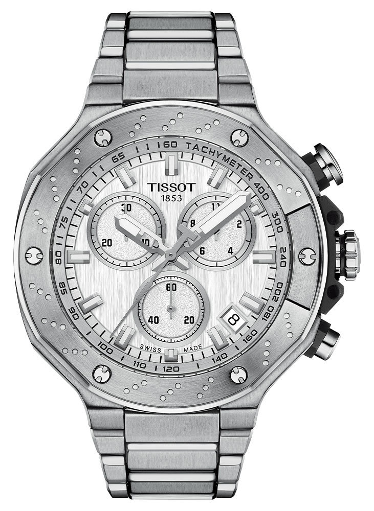 Velké, čitelné ručičky naplněné svítící hmotou přesně ukazují aktuální čas. Doprovázejí je speciální subciferníky chronografu, které umožňují přesnější měření času například při pohybových aktivitách. Tento model má také prostor pro zobrazení data. Okno mezi čtvrtou a pátou hodinou informuje o aktuálním dni v měsíci. Tachymetr, jehož stupnice je umístěna na vnější části ciferníku, umožňuje měřit průměrnou rychlost na vzdálenost 1 kilometru, ideální pro milovníky rychlosti. Náramkové hodinky Tissot T-Race jsou především o výkonu. Mechanismus ETA Swiss Made Swiss přesně pohání všechny funkce těchto hodinek. Když je potřeba vyměnit baterii, funkce End Of Life spustí úsporu energie a sekundová ručička bude každých pár sekund skákat indexy.