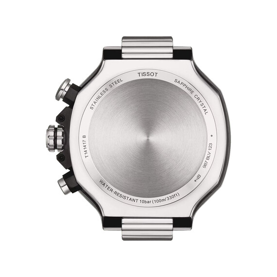 U švýcarských hodinek Tissot T141.417.11.041.00 s chronografem jsou to takové detaily: luneta ve tvaru brzdového kotouče, start a reset vyrytý na tlačítkách nebo tachymetr na vnitřním kroužku. A protože vytrvalost se ve sportu počítá i mimo čas, je Tissot Quartz Chronograph vyroben z nerezové oceli 316L a vybaven safírovým sklem s antireflexní vrstvou. Díky tomu je tato závodní časomíra prakticky odolná proti poškrábání, rzi a mechanickému poškození. Velké 45mm pouzdro má drsný kartáčovaný povrch s leštěnými hranami, které dodávají nádech elegance. Díky prvotřídní voděodolnosti 10 barů (100 m / 330 stop) je zase vhodná pro sporty a aktivity ve vodě.