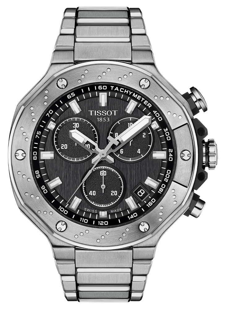 Velké, čitelné ručičky naplněné svítící hmotou přesně ukazují aktuální čas. Doprovázejí je speciální subciferníky chronografu, které umožňují přesnější měření času například při pohybových aktivitách. Tento model má také prostor pro zobrazení data. Okno mezi čtvrtou a pátou hodinou informuje o aktuálním dni v měsíci. Tachymetr, jehož stupnice je umístěna na vnější části ciferníku, umožňuje měřit průměrnou rychlost na vzdálenost 1 kilometru, ideální pro milovníky rychlosti. Náramkové hodinky Tissot T-Race jsou především o výkonu. Mechanismus ETA Swiss Made Swiss přesně pohání všechny funkce těchto hodinek. Když je potřeba vyměnit baterii, funkce End Of Life spustí úsporu energie a sekundová ručička bude každých pár sekund skákat indexy.
