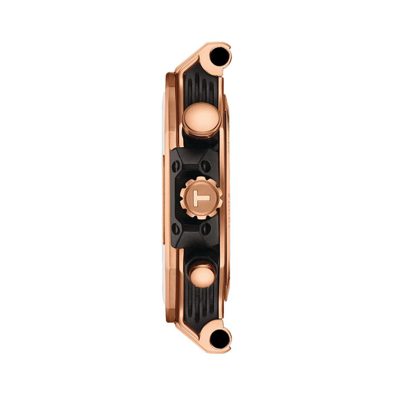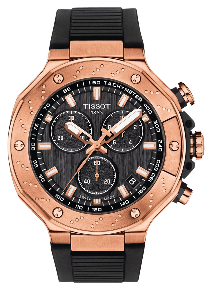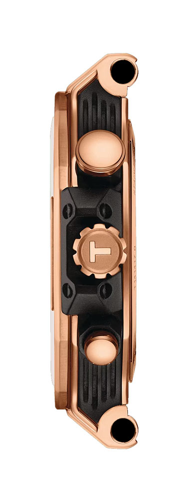 U pozlacených švýcarských pánských hodinek Tissot T-Race mezi takové detaily na řemínku patří: luneta ve tvaru brzdového kotouče, start a reset vyrytý na tlačítkách nebo tachymetr na vnitřním kroužku. A protože vytrvalost se ve sportu počítá i mimo čas, je Tissot Quartz Chronograph vyroben z nerezové oceli 316L a vybaven safírovým sklem s antireflexní vrstvou. Díky tomu je tato závodní časomíra prakticky odolná proti poškrábání, rzi a mechanickému poškození. Leštěné hrany a PVD povlak z růžového zlata dodávají pouzdru z broušené oceli eleganci. Gumový řemínek k němu připevněný je pohodlný a snadno se čistí. Díky prvotřídní voděodolnosti 10 barů (100 m / 330 stop) je zase vhodná pro sporty a aktivity ve vodě.