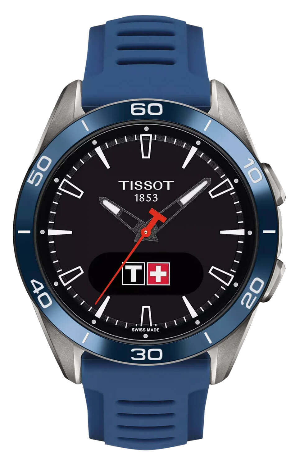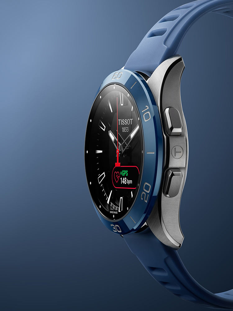 Navíc, solární hodinky T-Touch Connect Sport jsou vybaveny dotykovým safírovým sklem vyvinutým společností TISSOT, které zajišťuje vynikající ochranu před poškrábáním. Jsou také vybaveny AMOLED displejem, který reaguje jak na přímý dotyk, tak na boční tlačítka. Interaktivní ciferník obklopuje elegantní keramický lunetový kroužek s 60minutovým dělením. Pouzdro tohoto inteligentního hodinku o průměru 43,75 mm je vyrobeno z hipoalergenního a antimagetického titanu, což ně lehký a perfektně dokončený broušením a leštěním. Silikonový, výměnný páska v modré barvě má standardní přezku a rozměry: od 6 hodin, 118,80 mm, od 12 hodin, 80,55 mm.