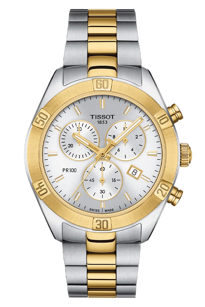 Tissot PR 100 Sport Chic Lady Chrono T101.917.22.031.00 je sportovní verze hodinek Tissot PR 100 pro dámy. Kombinace sportu a elegance, velké pouzdro z nerezové oceli korunované rámem s arabskými číslicemi. Čitelný číselník s indexy, na kterých je luminiscenční látka, byl obohacen o přesný chronograf. Třída vodotěsnosti 100 m znamená, že ji nemusíte sundávat kvůli plavání. Věrný svému názvu je nový Tissot PR 100 přesný a působivý. Moderní design v kombinaci s vysokou voděodolností a novým, velmi odolným náramkem s pohodlným zapínáním na knoflík. Dynamické ručičky pokryté vrstvou luminiscenční látky Super-LumiNova umožňují čitelnost v podmínkách naprosté tmy.