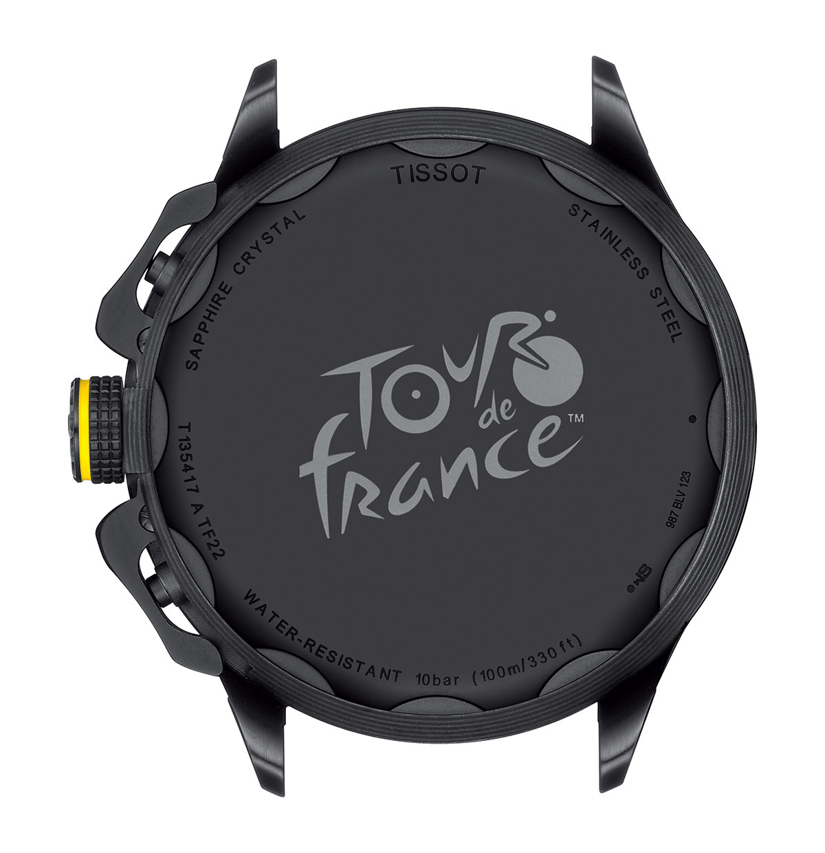 Model T135.417.37.051.00 je volbou pro všechny sportovce, zejména zapálené cyklisty nebo fanoušky cyklistiky, kterým se jistě budou líbit detaily blízké jejich vášni. Mezi ně patří mimo jiné žlutá (ikonická barva závodu) zmenšenina jízdního kola tvořící jádro sekundové ručičky, zadní strana pouzdra zdobená oficiálním logem a gumový a kožený řemínek s rally otvory. Celá struktura hodinek byla vytvořena tak, aby vyhovovala potřebám všech ostatních lidí zapojených do života plného adrenalinu, zrychleného dýchání a intenzivních emocí.