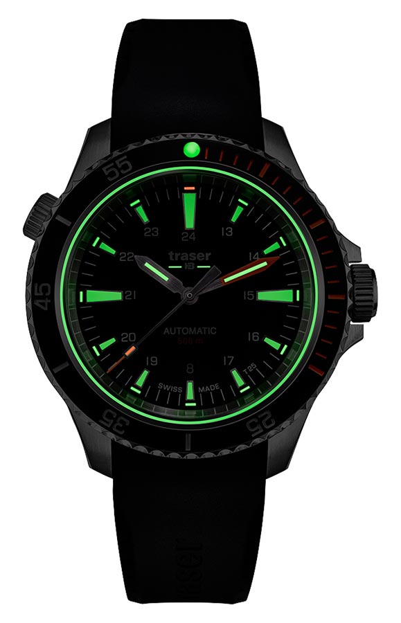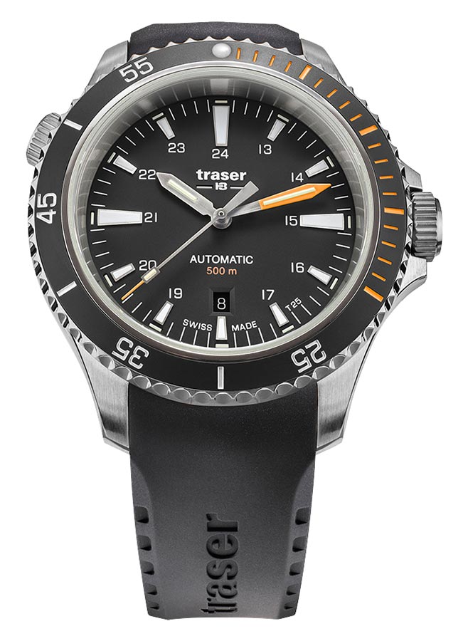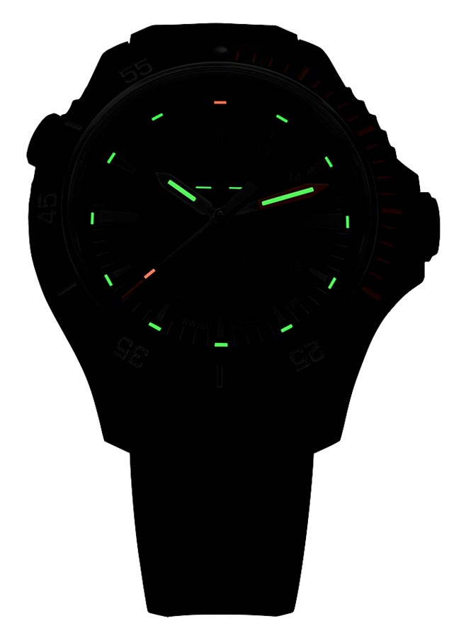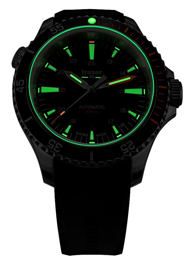 Nová edice profesionálních outdoorových diverských hodinek traser® je nyní k dispozici se švýcarským mechanickým Machinekem s automatickým samonatahovacím Machinekem! Pánské hodinky Traser P67 Diver Automatic Black T25 110322 jsou dlouho očekávaným mechanickým nástupcem quartz modelu P67 SuperSub. Stejně jako jeho předchůdce splňuje přísné normy ISO 6425, které definují požadavky na hodinky pro profesionální potápění. Jeho působivé, 46 mm a do 500 metrů voděodolné pouzdro z vysoce kvalitní nerezové oceli je vybaveno heliovým ventilem a speciálně chráněnou korunkou. Ciferník je skvěle čitelný jak ve dne, tak v noci, stejně jako 500 metrů pod hladinou moře, za což vděčí nejen efektnímu designu, ale především inovativní technologii trigalight® , která poskytuje soběstačný zdroj světla. . Jedná se o ideální nabídku pro profesionální divere, všechny hledače a průzkumníky, jejichž nedostupnost jen více přitahuje sportovce a outdoorové nadšence. Hodinky jsou naprosto robustní, snadno ovladatelné, funkční, robustní a atraktivní i pro každodenní použití.