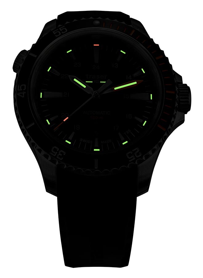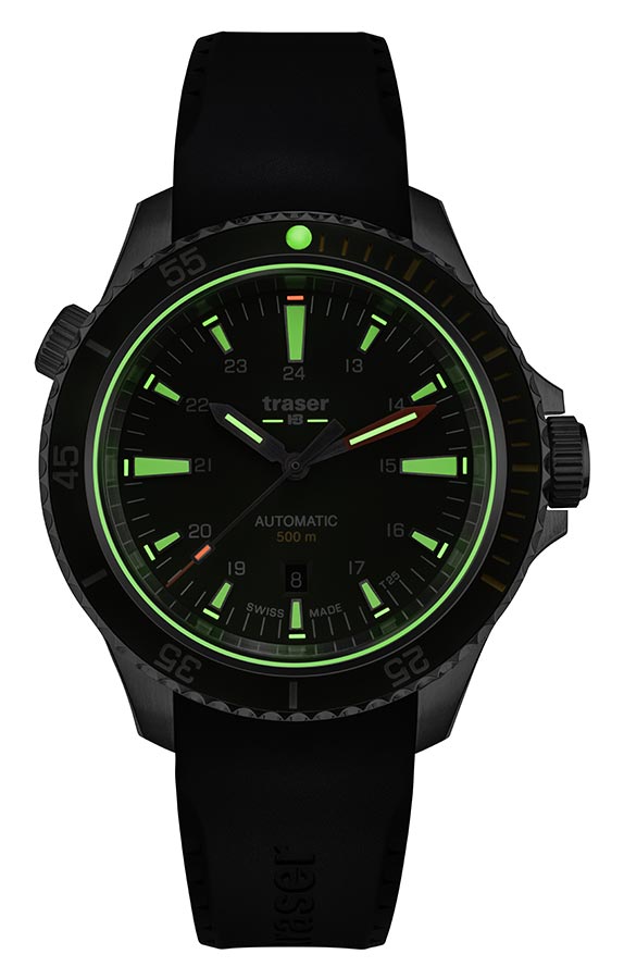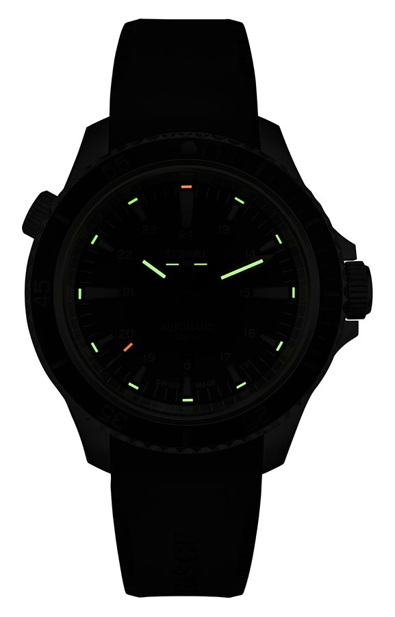 Nová edice profesionálních outdoorových diverských hodinek traser® je nyní k dispozici se švýcarským mechanickým Machinekem s automatickým samonatahovacím Machinekem! Pánské hodinky Traser P67 Diver Automatic Green T25 110326 jsou dlouho očekávaným mechanickým nástupcem quartz modelu P67 SuperSub. Stejně jako jeho předchůdce splňuje přísné normy ISO 6425, které definují požadavky na profesionální diverské hodinky. Jeho působivé, 46 mm a do 500 metrů voděodolné pouzdro z vysoce kvalitní nerezové oceli je vybaveno heliovým ventilem a speciálně chráněnou korunkou. Ciferník je skvěle čitelný jak ve dne, tak v noci, stejně jako 500 metrů pod hladinou moře, za což vděčí nejen efektnímu designu, ale především inovativní technologii trigalight® , která poskytuje soběstačný zdroj světla. . Jedná se o ideální nabídku pro profesionální divere, všechny hledače a průzkumníky, jejichž nedostupnost jen více přitahuje sportovce a outdoorové nadšence. Hodinky jsou naprosto robustní, snadno ovladatelné, funkční, robustní a atraktivní i pro každodenní použití.