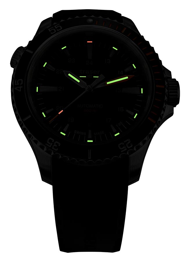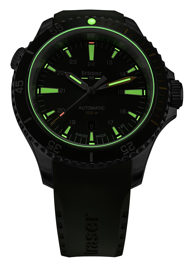 Nová edice profesionálních outdoorových diverských hodinek traser® je nyní k dispozici se švýcarským mechanickým Machinekem s automatickým samonatahovacím Machinekem! Pánské hodinky Traser P67 Diver Automatic Green T25 110327 jsou dlouho očekávaným mechanickým nástupcem quartz modelu P67 SuperSub. Stejně jako jeho předchůdce splňuje přísné normy ISO 6425, které definují požadavky na hodinky pro profesionální potápění. Jeho působivé, 46 mm a do 500 metrů voděodolné pouzdro z vysoce kvalitní nerezové oceli je vybaveno heliovým ventilem a speciálně chráněnou korunkou. Ciferník je skvěle čitelný jak ve dne, tak v noci, stejně jako 500 metrů pod hladinou moře, za což vděčí nejen efektnímu designu, ale především inovativní technologii trigalight® , která poskytuje soběstačný zdroj světla. . Jedná se o ideální nabídku pro profesionální divere, všechny hledače a průzkumníky, jejichž nedostupnost jen více přitahuje sportovce a outdoorové nadšence. Hodinky jsou naprosto robustní, snadno ovladatelné, funkční, robustní a atraktivní i pro každodenní použití.
