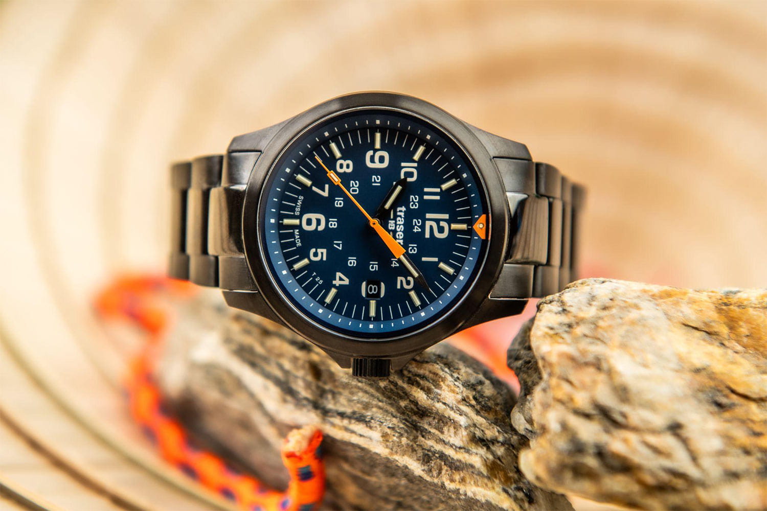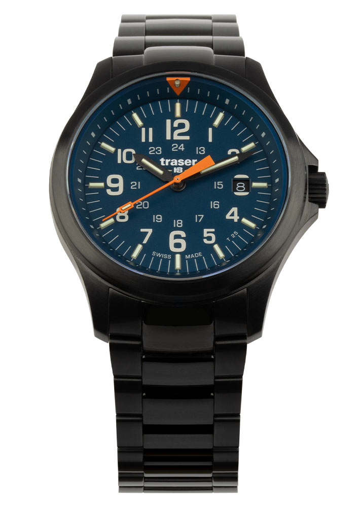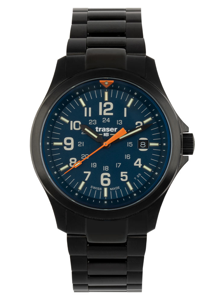 Estetická vylepšení ciferníku, jako je větší písmo, nové ručičky a výrazný intenzivně oranžový trojúhelník na 12. hodině, zdůrazňují čitelnost a styl hodinek. Technologie Trigalight® a povrchová úprava Super-LumiNova® na rukou zaručují vynikající viditelnost i v úplné tmě. Celé je to pokryto safírovým sklem s antireflexní vrstvou, snižující odlesky. Pod ciferníkem hodinek tracer na náramku se nachází švýcarský mechanismus Ronda Swiss Made, který zajišťuje nejen přesnost, ale také spolehlivost v každé situaci. Sledovač P67 Officer Pro Blue 111070 není jen nástroj pro měření času, ale také výraz individuality pro aktivní outdoorové nadšence, kteří oceňují styl, pevnost a funkčnost. Prezentované pánské hodinky traser budou výbornou volbou jako dárek. Sada obsahuje látkový řemínek NATO, díky kterému si hodinky snadno sladíte k aktuálnímu stylu.