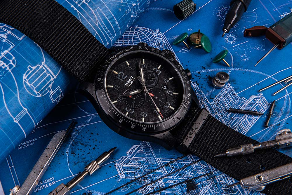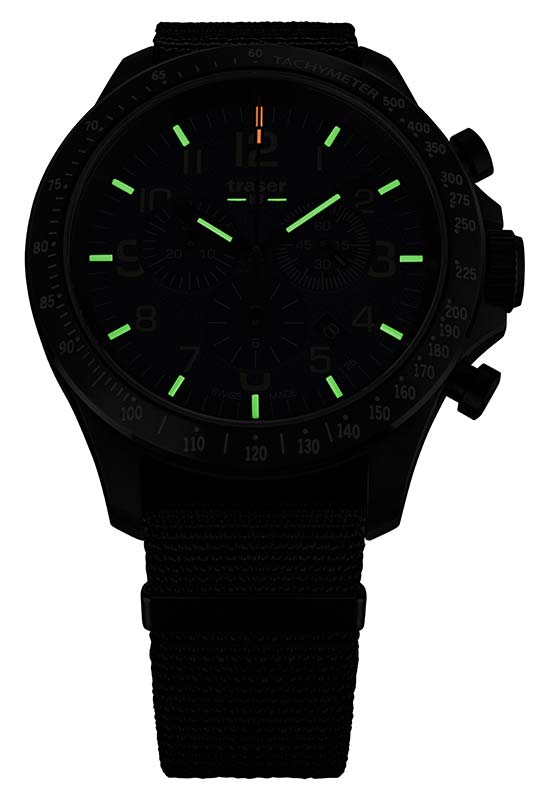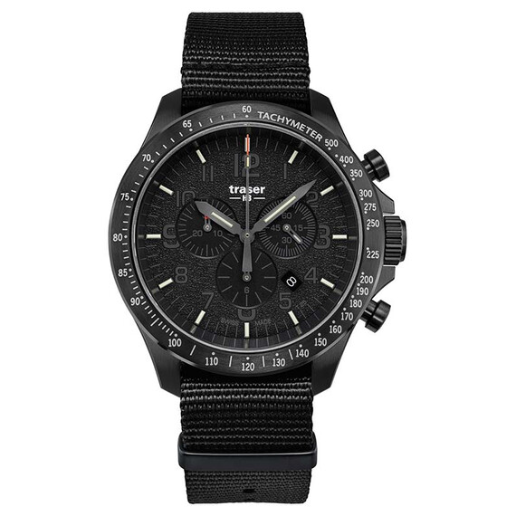 Traser P67 Officer Pro Chronograph Black 109465 jsou taktické pánské hodinky švýcarské značky traser® , která od roku 1969 vytváří hodinky pro potřeby vojenských služeb, outdoorových nadšenců, survival nadšenců, bushcraftu a světoběžníků, bloudí po off-roadových stezkách. Vojenský model z kolekce P67 Officer Pro Chronograph se objevuje v jedinečném odstínu černé, díky kterému se ti nejvíce klimaticky pohlcení uživatelé budou cítit, jako by patřili ke speciální jednotce, která se prodírá přes obranné barikády nepřítele.
