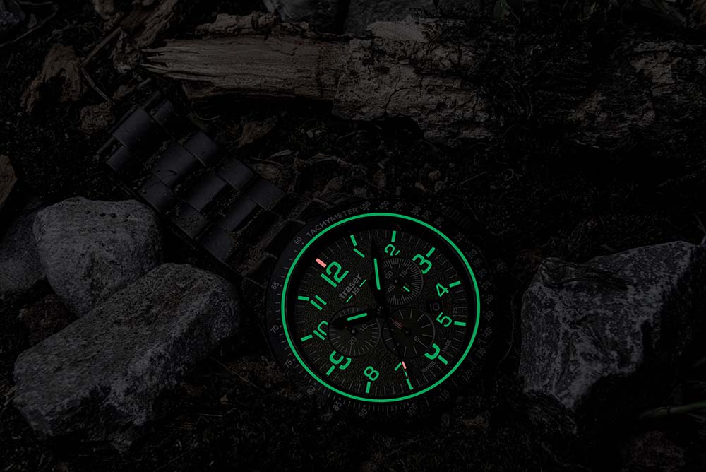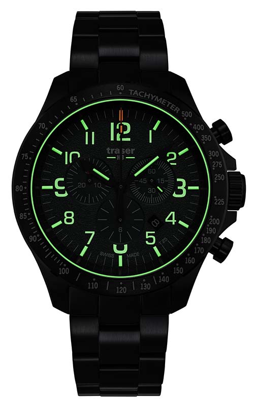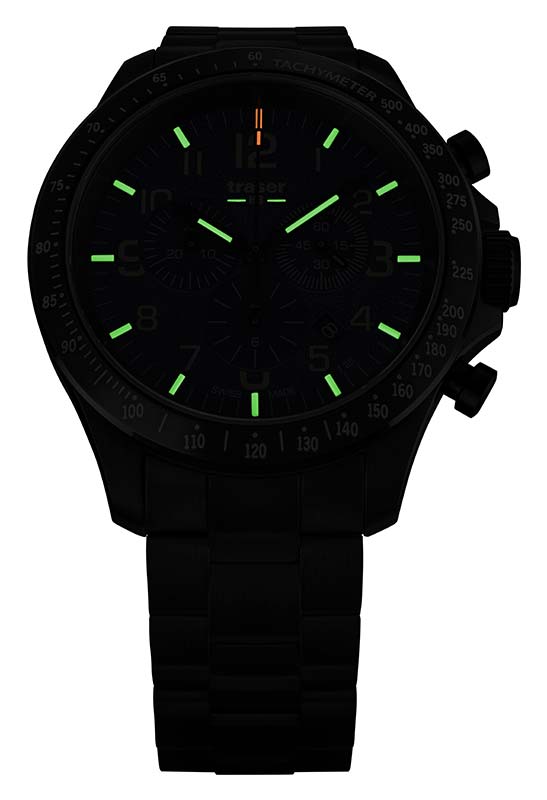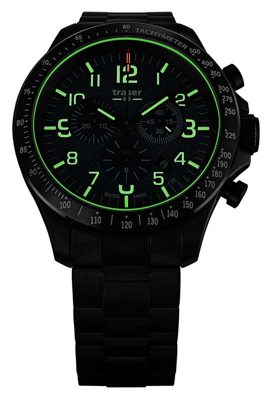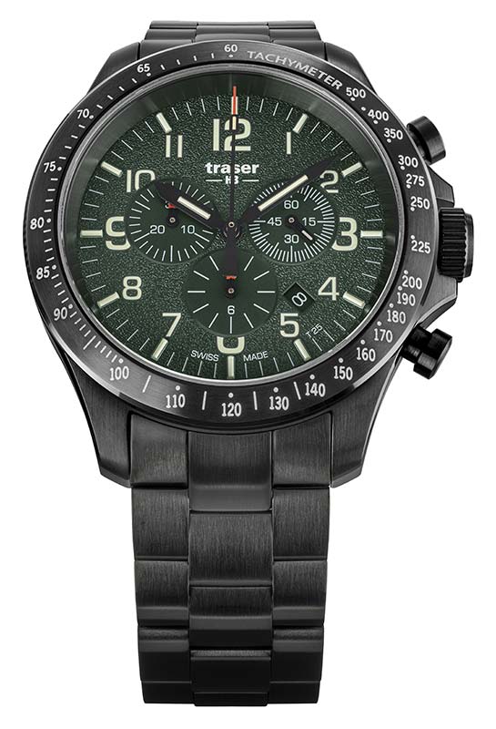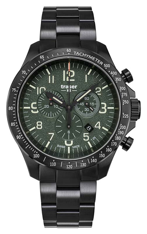Traser P67 Officer Pro Chronograph Green 109464 jsou taktické pánské hodinky švýcarské značky traser® , která již od roku 1969 vytváří hodinky pro potřeby vojenských služeb, outdoorových nadšenců, survival nadšenců, bushcraftu a světoběžníků, bloudí po off-roadových stezkách. Vojenský model z kolekce P67 Officer Pro Chronograph se objevuje v jedinečném zeleném odstínu, díky kterému se ti nejvíce klimaticky pohlcení uživatelé budou cítit, jako by patřili k jednotkám polních sil, prorážejících bahnité a zalesněné nedotčené oblasti.