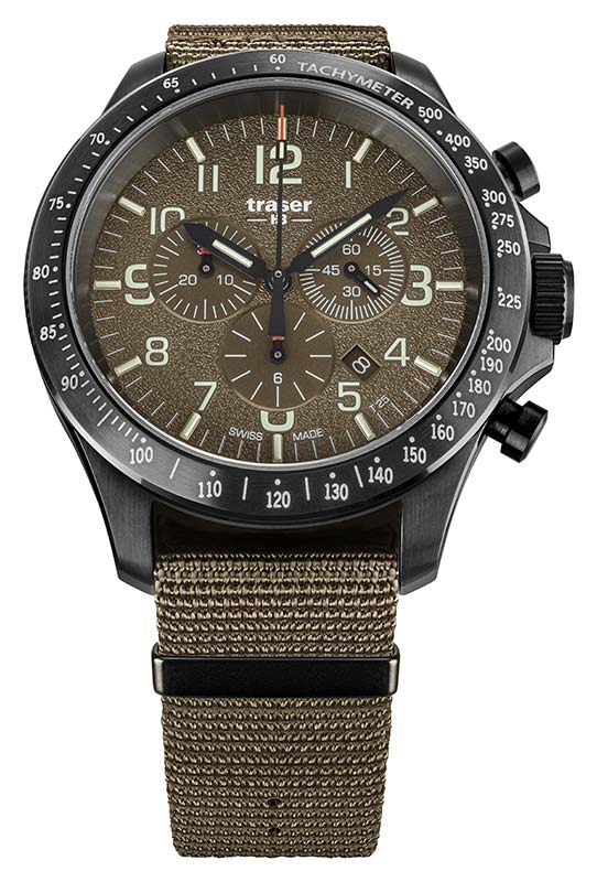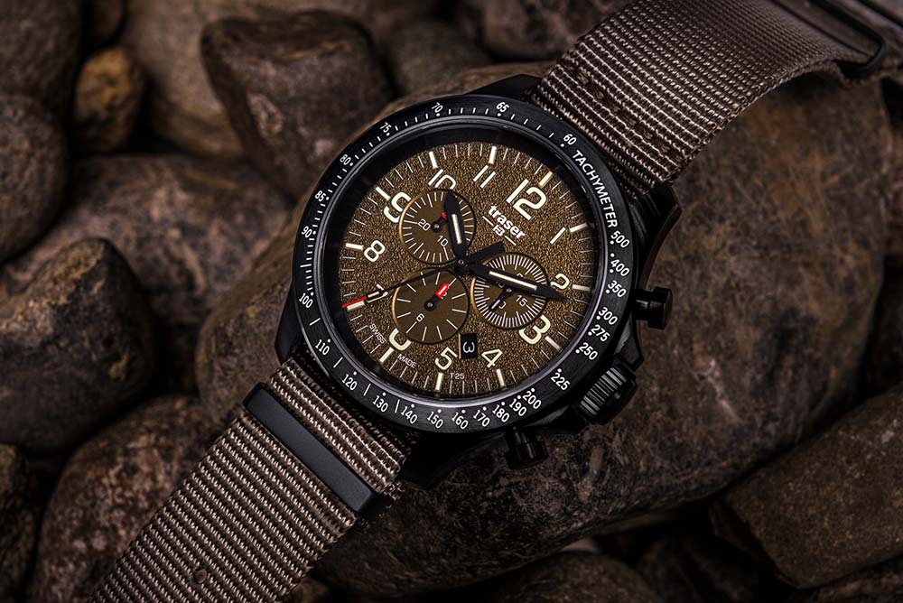 Traser P67 Officer Pro Chronograph Khaki 109459 jsou taktické pánské hodinky švýcarské značky traser® , která od roku 1969 vytváří časomíry pro potřeby vojenských služeb, outdoorových nadšenců, survival nadšenců, bushcraftu a světoběžníků, bloudí po off-roadových stezkách. Vojenský model z kolekce P67 Officer Pro Chronograph se objevuje v jedinečném khaki odstínu, díky kterému se ti nejvíce klimaticky pohlcení uživatelé budou cítit, jako by patřili k Desert Assault Troops, prorážejícím hořící a drsné písky.