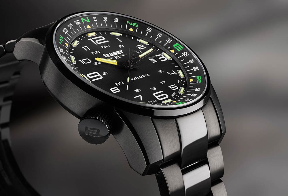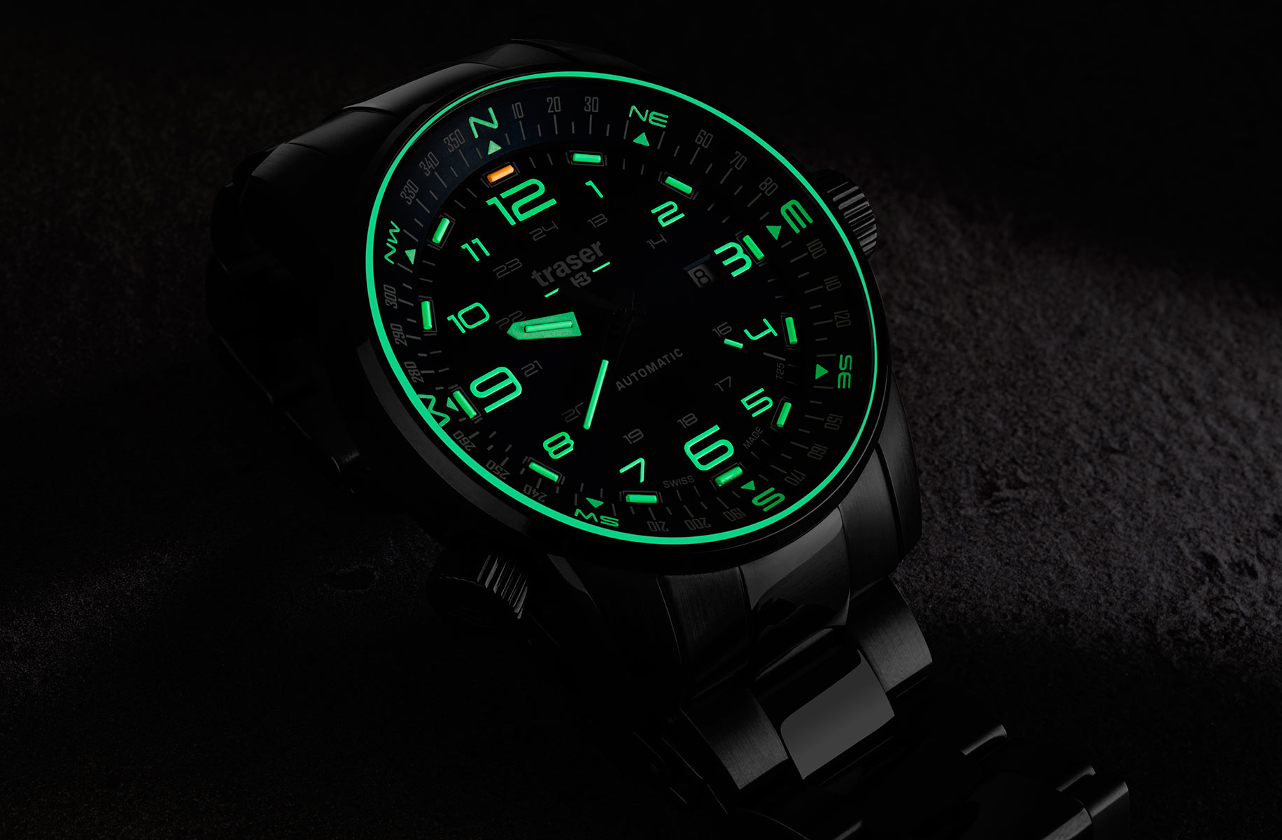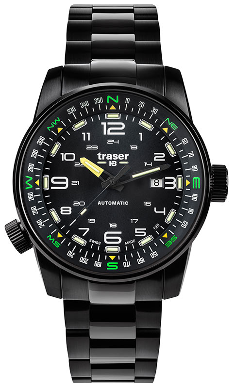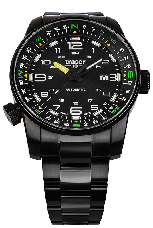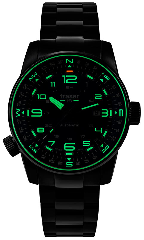 Mezi specifikace ciferníku patří 24hodinová stupnice , datumovka a navíc otočná stupnice kompasu se šroubovací korunkou na osmé hodině. Zmíněná směrová stupnice svědčí o ušlechtilém povolání hodinek a dává jim pro člověka velký význam. Ukáže mu nejen čas, ale i postará se o správnou cestu a stane se nedílným společníkem vzdálených výprav do neznáma. Navíc, tradičně pro značku traser®, jsou hodinky vybaveny 13 světle zelenými tritiovými trubicemi a 1 oranžovou na ciferníku a 3 světle zelenými na ručičkách. Uvnitř trubic byla použita nejpokročilejší a soběstačná technologie trigalight® . Jedná se o nejmodernější, soběstačný světelný zdroj, který se doposud v hodinářství používal, originální produkce manufaktury mb-microtec - majitele značky traser®. Jeho největší a bezkonkurenční výhody jsou: není potřeba externích zdrojů energie pro vyzařování světla, 10letá záruka na osvětlení se stejnou intenzitou, zajišťující životnost plynových trubic až 25 let ! Navíc jsou bezúdržbové a zcela bezpečné!
