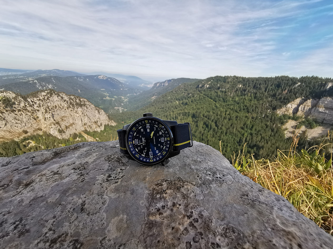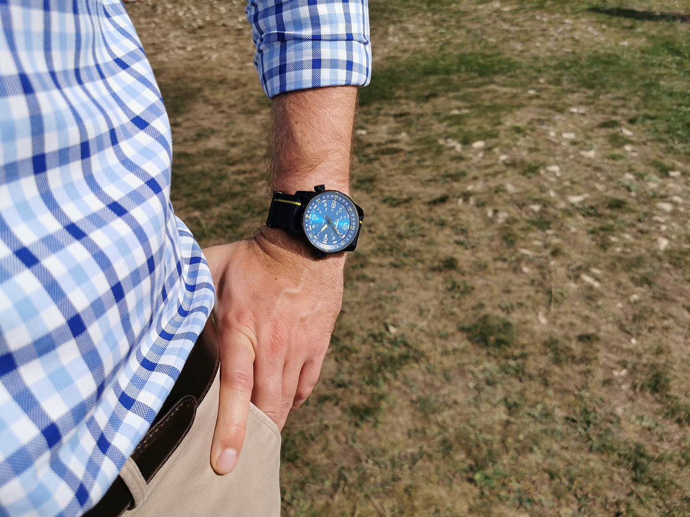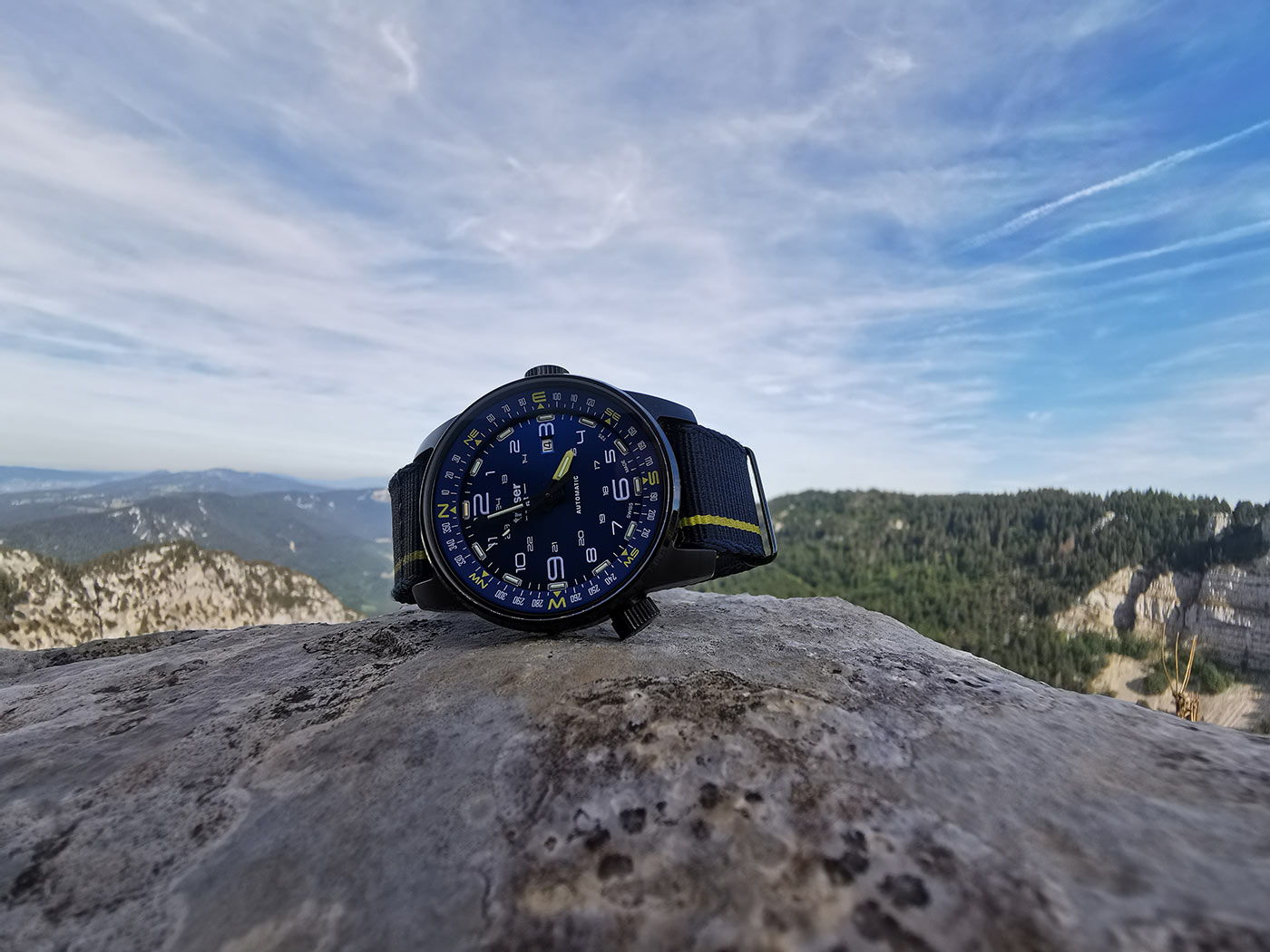 P68 Pathfinder je kombinací švýcarské přesnosti a užitečných funkcí. Srdce, které hodinky pohání, je hodinářským nadšencům dobře známé, automatický Machineek ETA 2824-2 . Zodpovídá za přesné měření času a indikaci data. Nejdůležitější funkcí časomíry je kompas, který bude viditelný ve dne, při západu slunce i v noci. Arabské indexy a geografické směry jsou vyplněny SupeLuminova® , zatímco ostatní indexy jsou obdélníkové trubice s tritiem, které jsou také zapuštěny na ručičkách. Pouzdro je vyrobeno z nerezové oceli o průměru 46 mm a má černý PVD povlak. Modrý textilní řemínek se žlutým proužkem odkazuje k barvě hodinek.