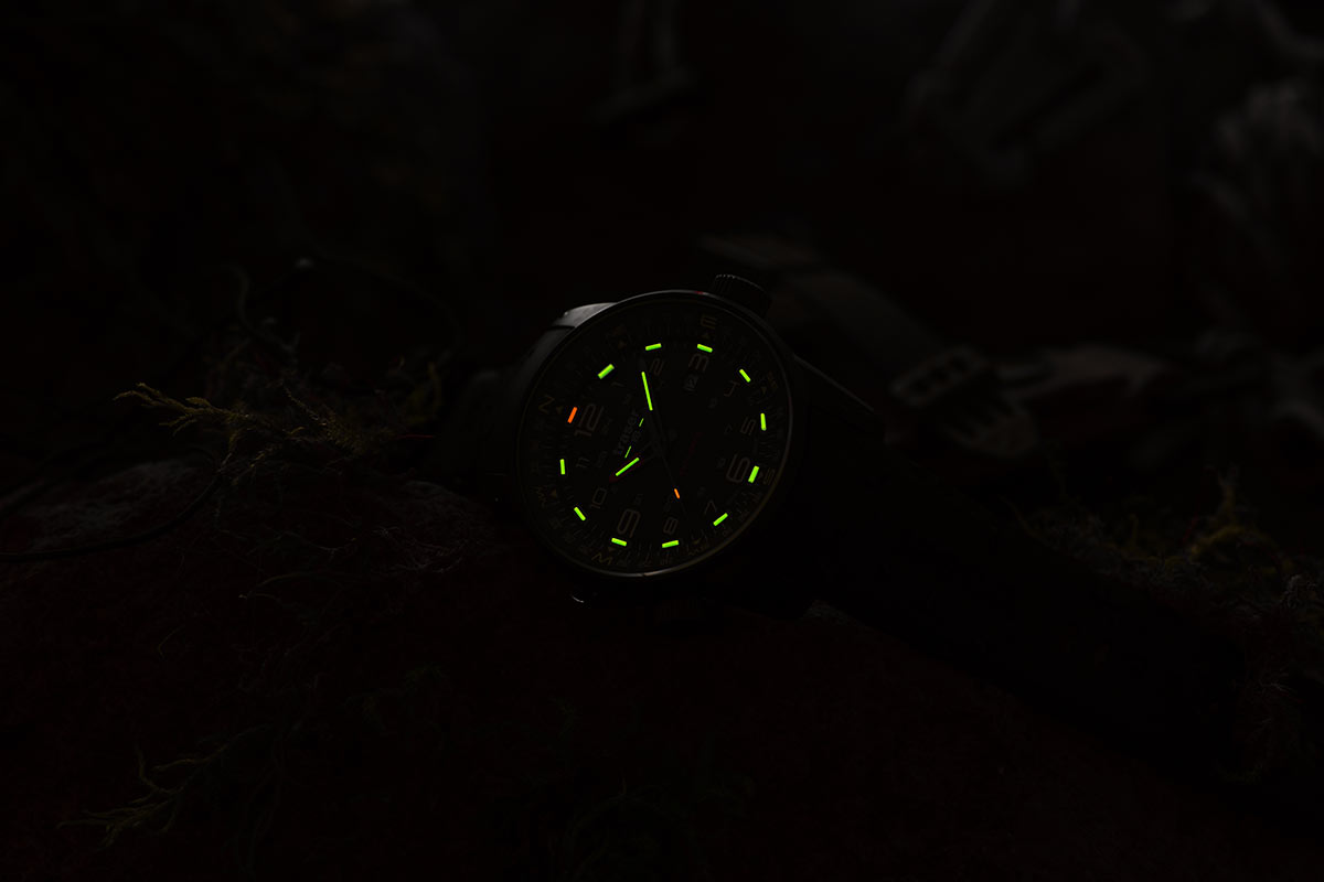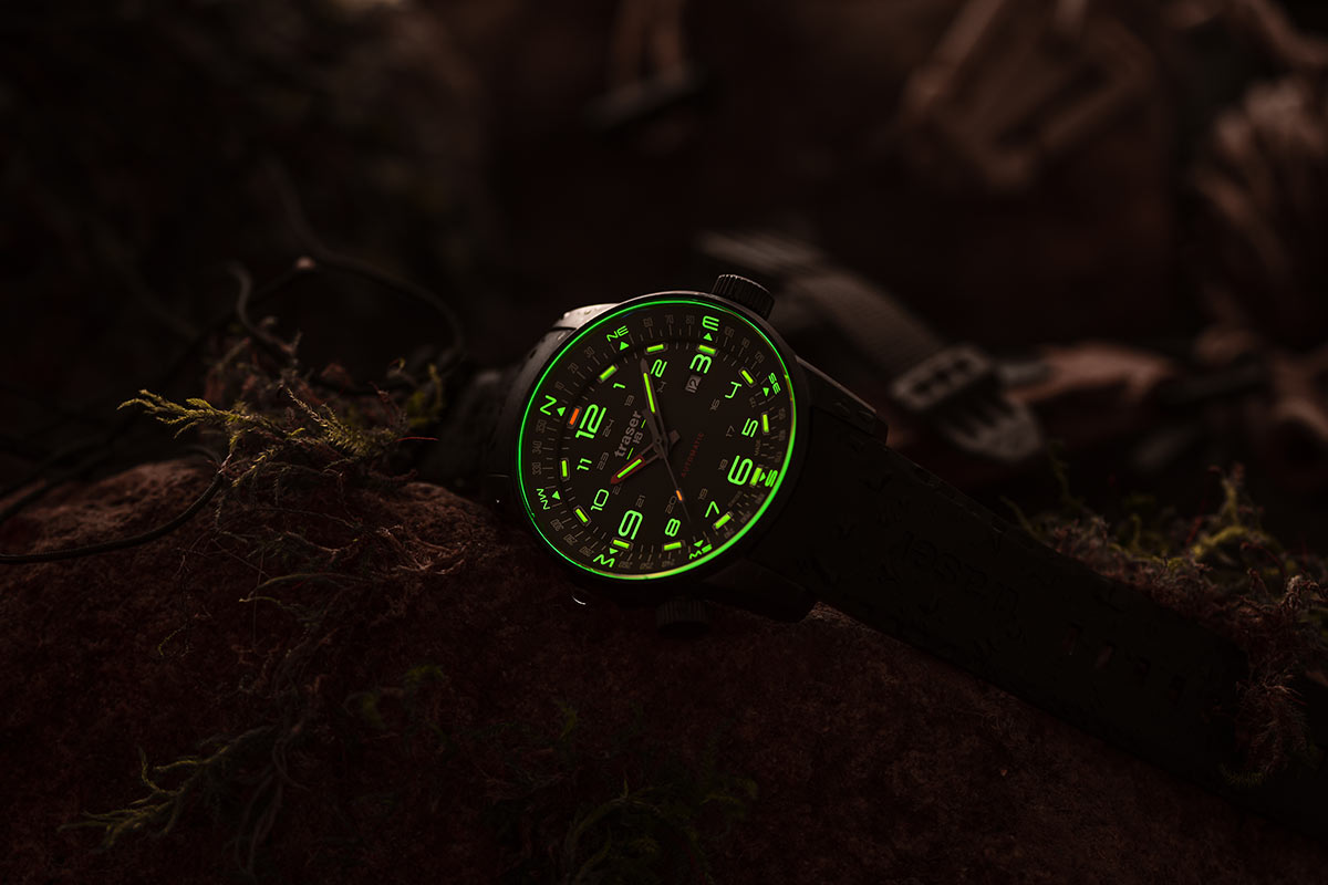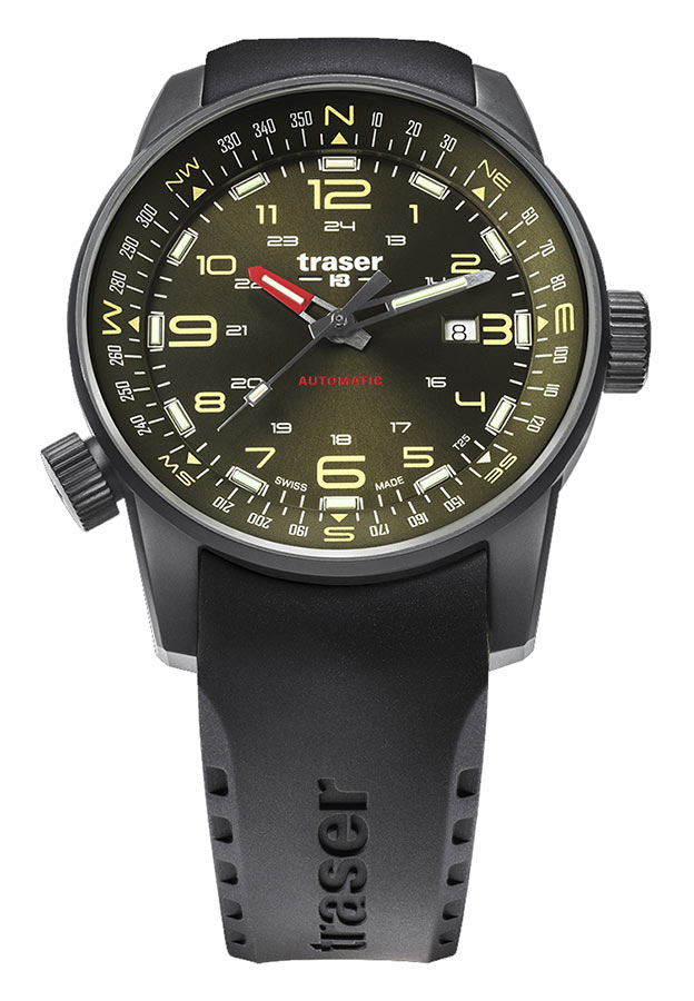 Ať už v městské džungli, v pustých pouštích nebo na cestách po Sedmi moří: velké hodinky s kompasem 110457 Traser P68 Pathfinder Automatic Green 110457 vám ukazují čas a směr. Díky integrovanému kroužku kompasu jsou tyto hodinky vaším průvodcem, abyste určili svůj zeměpisný směr a následovali svého ducha dobrodružství. Skvělý společník pro cestovatele a průzkumníky. Protože se musíte spolehnout na své hodinky, technologie Trigalight® - soběstačný zdroj světla, zaručuje perfektní viditelnost, bez ohledu na to, kde se nacházíte a v kterou hodinu.
