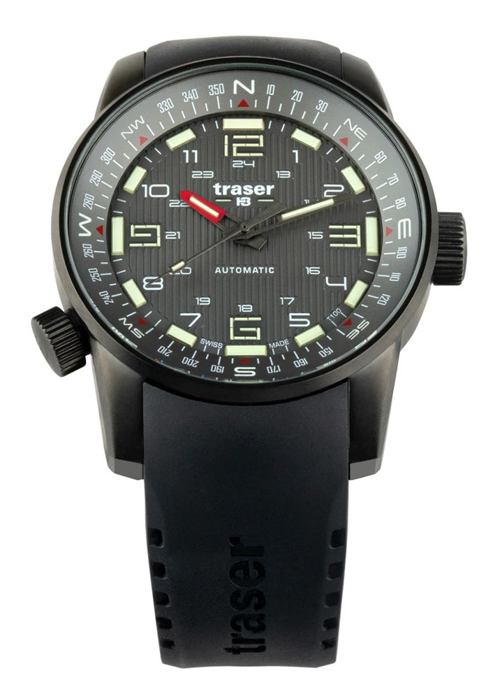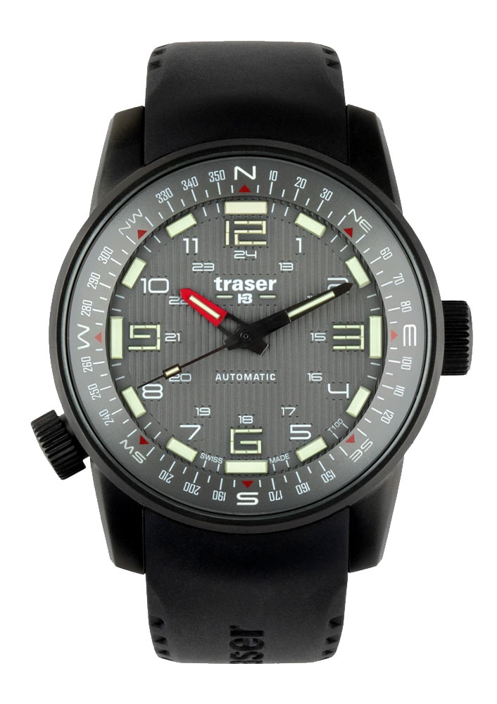 Přední část této limitované edice hodinek traser pokrývá vysoce kvalitní safírové sklo. Sklo s vnitřním antireflexem kryje šedý a extrémně čitelný číselník se stupnicí kompasu. Již zmíněná korunka na osmé hodině pomáhá přesně udávat geografický směr a umožňuje rychlou a efektivní navigaci v terénu pomocí těchto automatických routerových hodinek. Čas je indikován velkými a čitelnými ručičkami. Hodiny jsou odlišeny kontrastní červenou barvou. Hodinové displeje na šedém číselníku nabízejí odečítání času ve 12/24-hodinovém režimu.