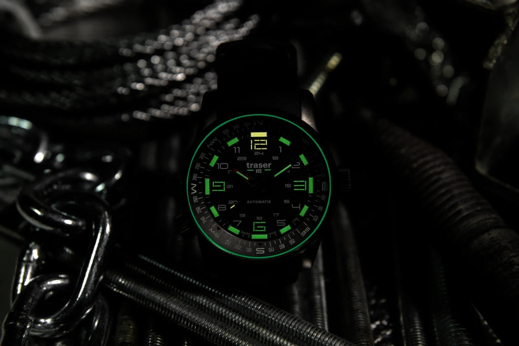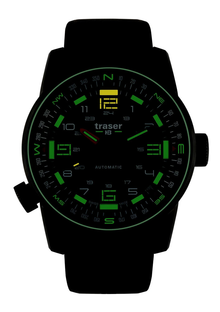 Arabské ručičky a indexy s patentovaným systémem osvětlení trigalight® T100. Osvětlovací systém s plynovou trubicí je tovární výkladní skříní prezentovaného modelu traser P68 Pathfinder. Tato technologie umožňuje hodinkám nepřetržitě vyzařovat světlo po dobu až 25 let. Limitovaná verze hodinek traser P68 Pathfinder T100 Limited Edition využívá zvýšenou dávku tritia, která dále zvyšuje viditelnost ciferníku. Plynem plněné trubice osvětlí ciferník kdykoli a kdekoli a usnadní majiteli tohoto modelu kontrolu času v různých dobrodružstvích o přežití.