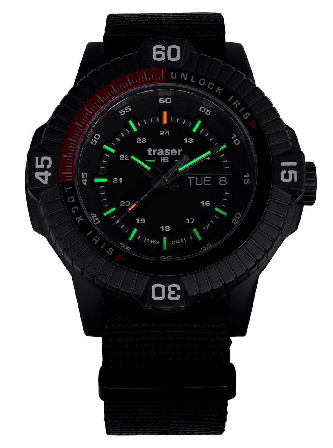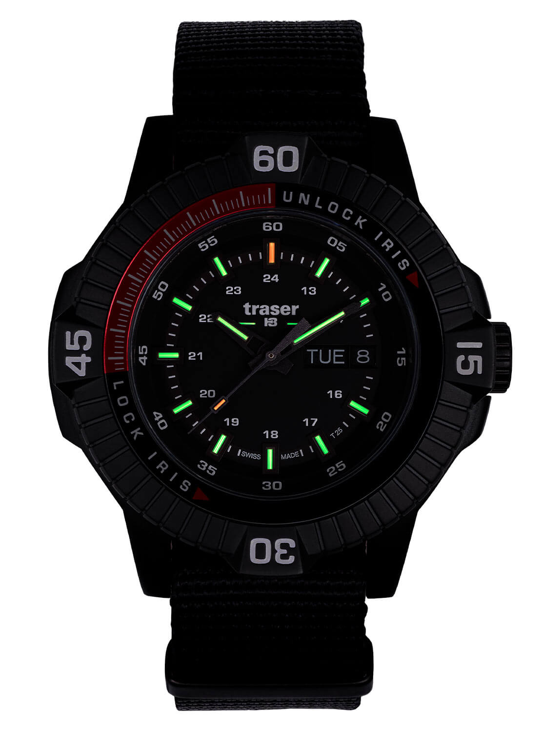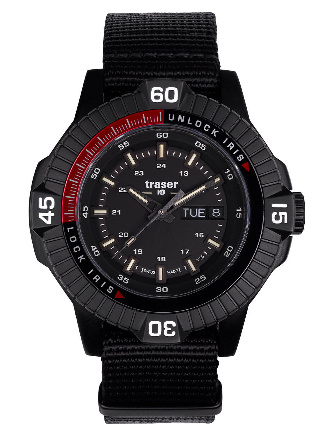 Limitované hodinky Traser P99 Tactical Black na textilním řemínku jsou určeny pro ty, kdo nepřipouštějí kompromisy. Věnované operátorům, vojákům, nadšencům survivalu i všem, kteří oceňují skutečnou funkčnost spojenou se švýcarskou precizností. Traser P99 nejenže drží krok s vaším tempem – on ho definuje.