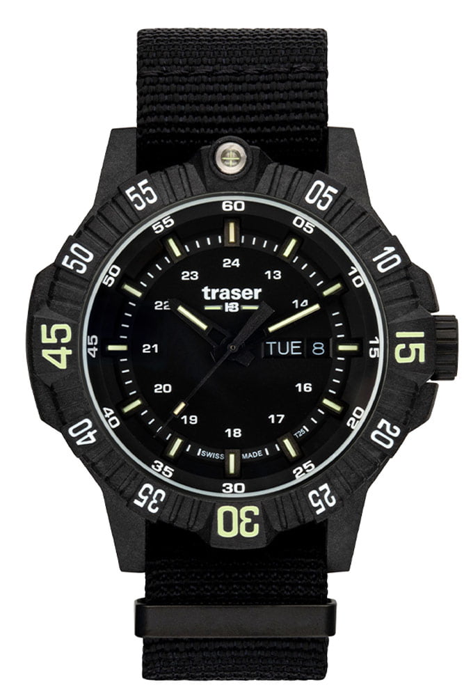 Švýcarská hodinářská značka traser představuje pánské taktické hodinky Traser P99 Q Tactical 110722. Značka traser je hodinářský gigant nabízející hodinky ve vojenském stylu vyrobené z velmi pevných materiálů. Traser již dlouhou dobu nabízí hodinky, které se osvědčí v jakémkoli boji o přežití.