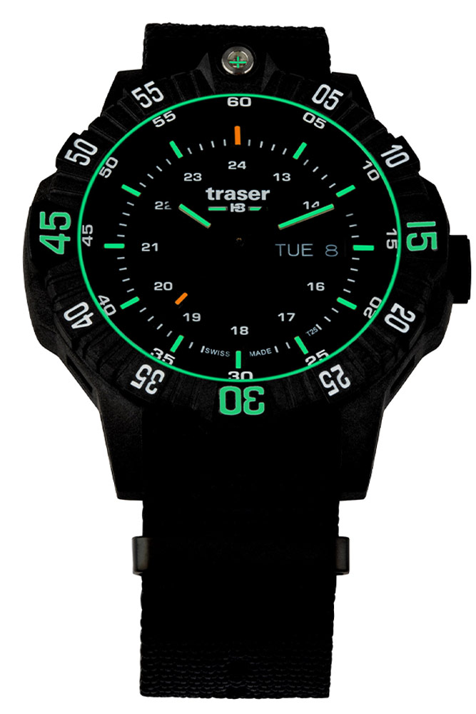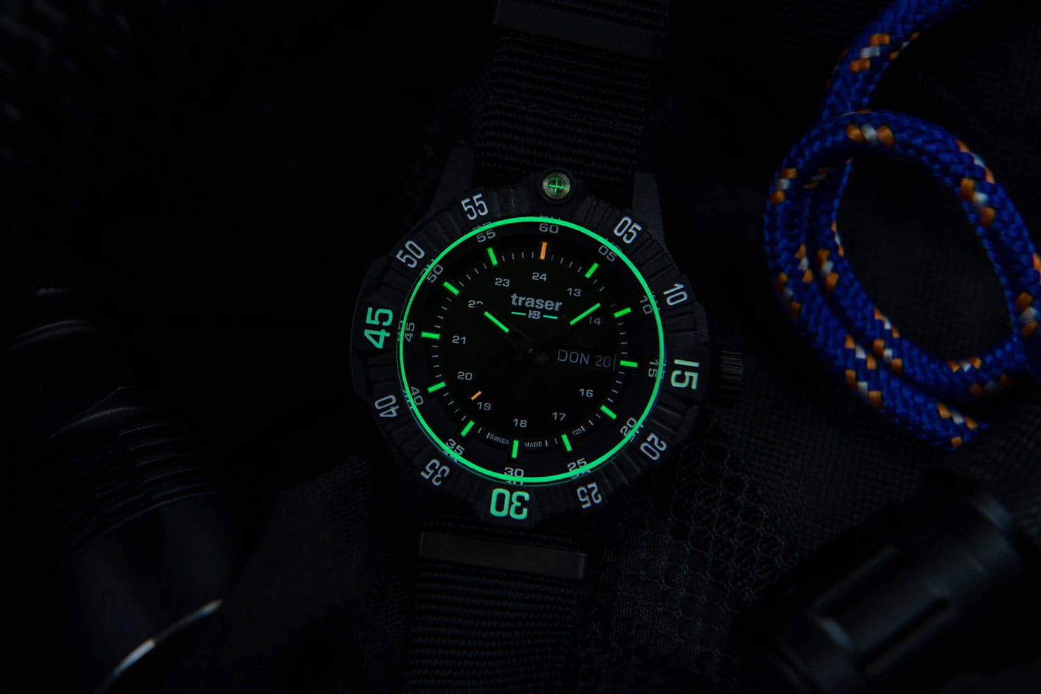 Hodinky mají také trigalight podsvícení - tritiové trubice, které nevyžadují předchozí vystavení slunečnímu záření. Poskytují nepřetržité, diskrétní osvětlení vždy po dobu až 20 let! Hodinky tracer P99 Q Tactical využívají luminiscenční těsnění známé již z modelu P96 OdP Evolution . Zelený kroužek je umístěn blízko značek hodin. Na pozici 12 hodin jsou dva tritiové proužky podsvícení. Trigalight podsvícení zajistí výbornou viditelnost po setmění.