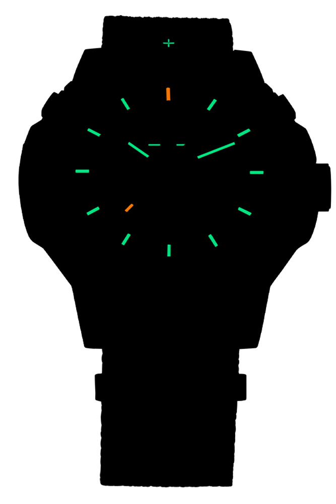 Model 110722 je kulaté pouzdro z nerezové oceli s CFRP na lunetě a PVD povlakem na korunce. Na přední straně pouzdra je otočná luneta se zeleným osvětlením SuperLuminova v bodech 15, 30, 45 a tritiem na 12 hod. Na očkách černého pouzdra je připevněn černý řemínek z materiálu typu NATO. Safírové sklíčko s vnitřní antireflexní vrstvou, extrémně tvrdé a těžko poškrábatelné, chrání vícevrstvý černý ciferník ve 24h režimu s arabskými číslicemi. Na číselníku je neobvyklé osvětlení v podobě trigalight® a SuperLuminova. Ve tři hodiny je den-datum okno s dnem v týdnu a měsícem v angličtině a němčině. Čas je indikován třemi svítícími černými ručičkami.