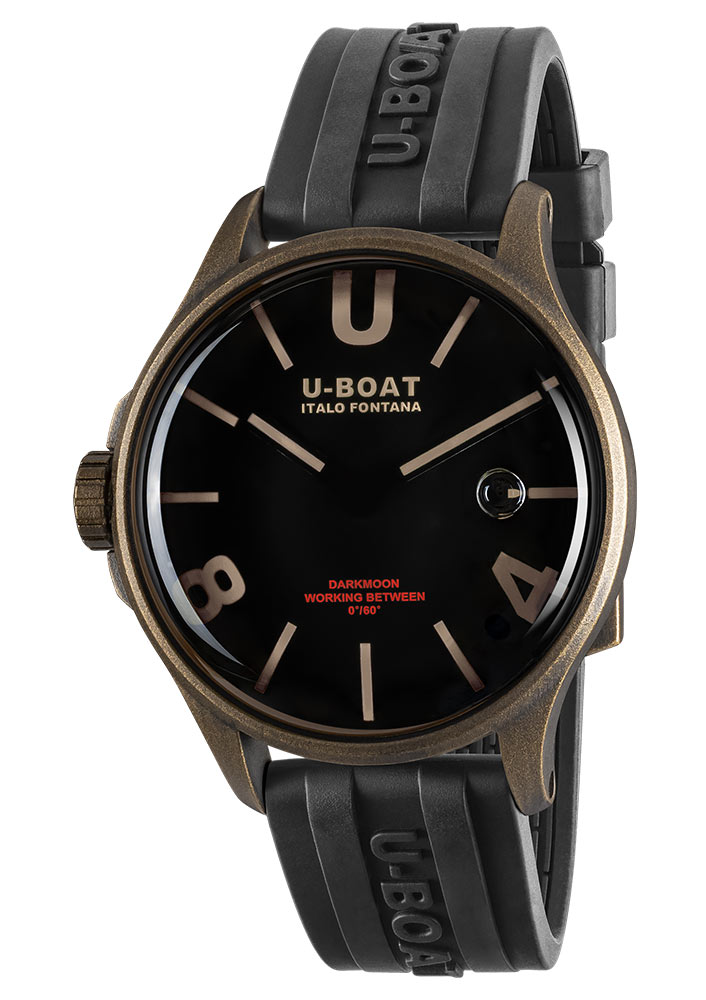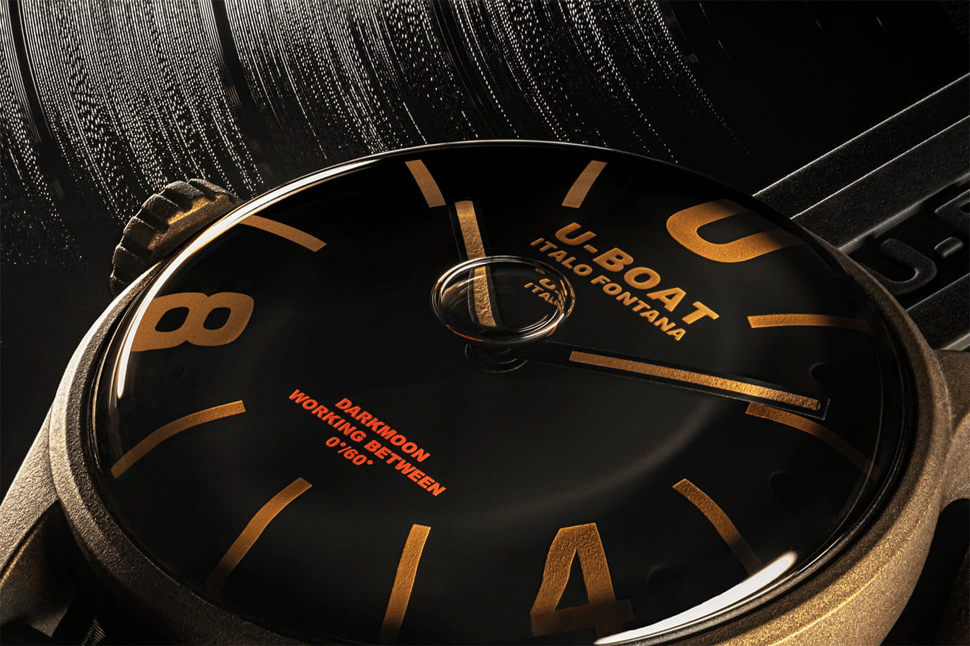 Italské hodinky U-BOAT Darkmoon Brown Vintage s ciferníkem a mechanismem ponořeným do oleje poskytují silnou cestu časem. Kombinuje vytříbený vintage přístup s inovativním designem. Pouzdro z oceli 316L potažené PVD bronzem vyzařuje retro charakter dosažený překrývajícími se vrstvami různých barev, které vytvářejí oxidovaný a stárnutý efekt. Řada Darkmoon Brown Vintage je příběhem, kde se minulost setkává s budoucností, tradice se snoubí s inovací a čas se stává uměním nošeným na zápěstí. Velké 44,80mm pánské hodinky U-Boat přinášejí výraznou retro příchuť kombinující klasicismus s inovací díky technologii „oil imersion“.