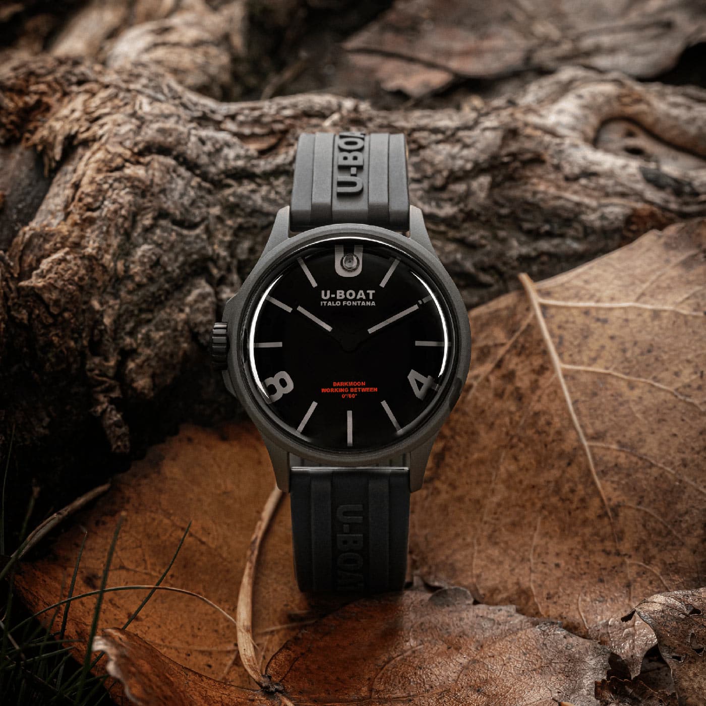 Italské hodinky U-BOAT Darkmoon Camouflage, s ciferníkem a mechanismem ponořeným v oleji, zajišťují silnou cestu časem. Spojují sofistikovaný vintage přístup s inovativním designem. Ocelové pouzdro 316L je pokryté PVD povlakem s kamuflážovým vzorem. Řada Darkmoon Camouflage je příběhem, kde se minulost prolíná s budoucností, tradice se setkává s inovací a čas se stává uměním nošeným na zápěstí. Velké pánské hodinky U-Boat o průměru 44,80 mm přinášejí jasnou vůni retro, kombinující klasiku s inovací díky technologii "oleje imerzního".