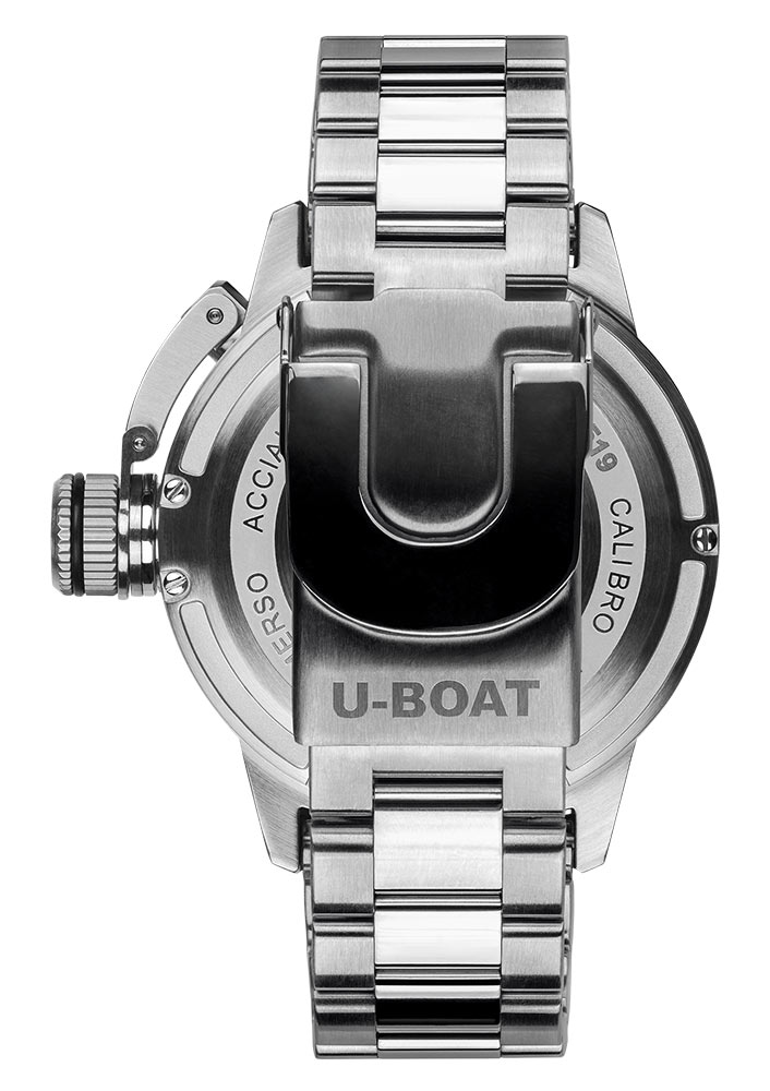 Náramek je připevněn k pouzdru z nerezové oceli a má leštěný povrch na středových článcích a matných stranách. Články mají místo svíracích čepů seřízení šroubem. Hladký povrch zaručuje dokonalé padnutí a pohodlí. Zapínání na zip se 3 snadnou úpravou na zip s detailem ve tvaru písmene U a laserem vyrytá loga na obou koncích a začínajících článcích přidávají vysokou vnímanou hodnotu. Uvnitř pouzdra těchto náramkových diverských hodinek je švýcarský automatický samonatahovací mechanismus přizpůsobený specifikacím U-BOAT. Kalibr U-28 vycházející ze Sellita SW 200 nabízí frekvenci 28 800 vibrací za hodinu, 4 Hz, rezervu chodu přibližně 41 hodin, 26 drahokamů a skeletonizovaný rotor.