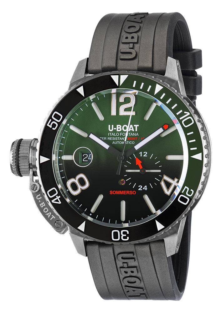 Hodinky jsou vodotěsné do 300 metrů, vyrobené z odolné nerezové oceli, vybavené safírovým sklem s AR povlakem, šroubovací korunkou s charakteristickou ochranou a šroubovacím pouzdrem, prokážou svou odolnost a funkčnost v náročných podmínkách. Model U-BOAT Sommerso Ceramic v kombinaci s vlastním upraveným švýcarským automatickým mechanismus, rozsáhlým, vysoce čitelným třívrstvým ciferníkem se zeleným a černým přechodem a viditelným rubínem a unikátním štítkem se sériovým číslem nabízí jedinečný styl a nejlepší italská kvalita.
