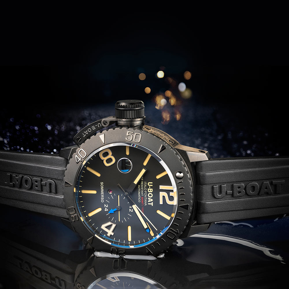 U-BOAT ITALO FONTANA Sommerso DLC 9015 s ikonickým, masivním a extrémně praktickým pouzdrem se šroubovací korunkou na levé straně, vysokou třídou voděodolnosti do 30 barů, 300 metrů, umožňující profesionální potápění, a se švýcarskou automatikou pohybu, je ideální nabídkou pro muže s podvodní vášní, sympatiemi k vodním konvencím a pro ty, kteří chtějí vyniknout originálním způsobem. SOMMERSO DLC dá svému uživateli nevýslovné a lehce tajemné charisma, za kterým stojí italská kvalita a vkus.
