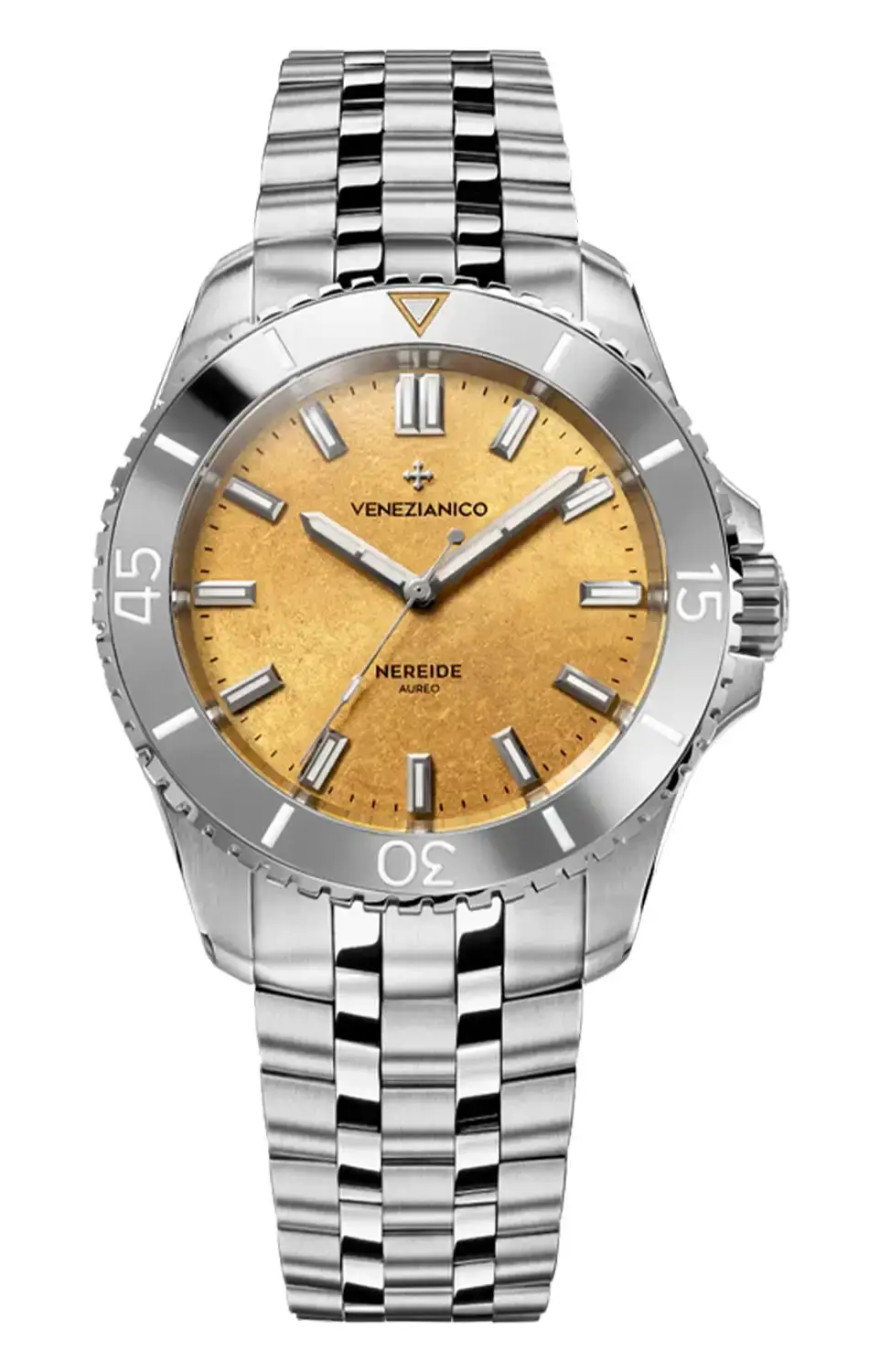 Hodinky se zlatým číselníkem Venezianico nejen odrážejí historické mistrovství benátských zlatníků, ale také spojují luxusní vzhled s pokročilými technickými vlastnostmi. Gravírování na dýnku, inspirované monumentální krásou baziliky svatého Marka, je jemnou připomínkou bohatého dědictví značky a jejího hlubokého vztahu k tradici. Nereide Aureo není pouze náramkové hodinky – je to symbol dokonalosti, vytříbeného stylu a nadčasové elegance.