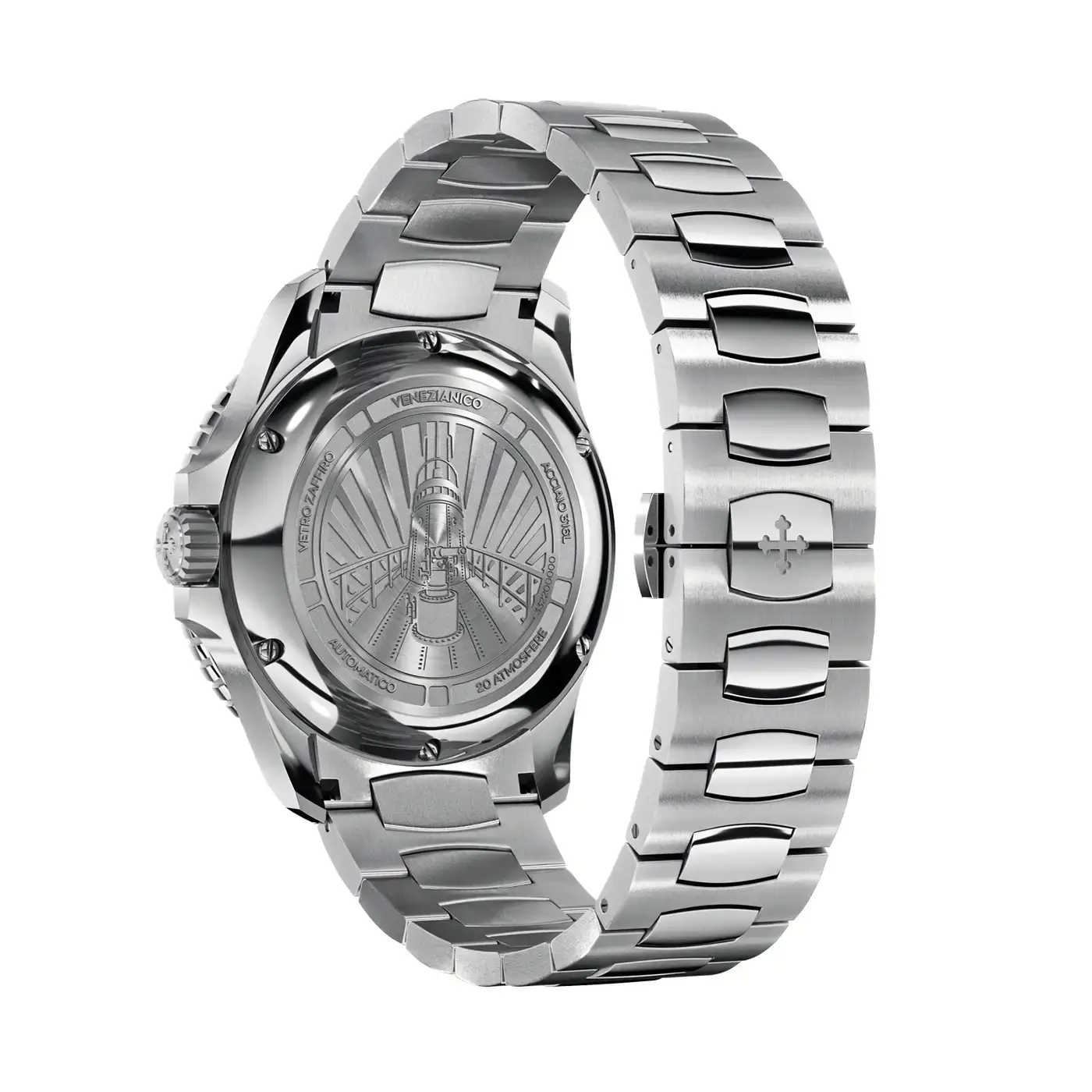 Elegantní pánské hodinky s náramkem z kolekce Nereide 42 byly pečlivě navrženy pro maximální odolnost a estetickou hodnotu. Otočná luneta z vysoce kvalitního skla BK7 se vyznačuje mimořádnou čirostí a vysokou odolností proti opotřebení, což z ní činí ideální volbu pro uživatele s důrazem na přesnost a dlouhou životnost. Pouzdro kombinuje leštěné a jemně kartáčované plochy, čímž získává elegantní a moderní charakter. Na zadní straně hodinek se nachází gravírované víčko uchycené šesti šrouby, které zajišťují dokonalou symetrii ozdobných prvků a umožňují zobrazení klíčových technických údajů i sériového čísla. Venezianico Nereide 42 3321503C je spojením moderních technologií, ergonomie a vytříbeného stylu – představuje tak výjimečný doplněk pro každého milovníka kvalitních hodinek.