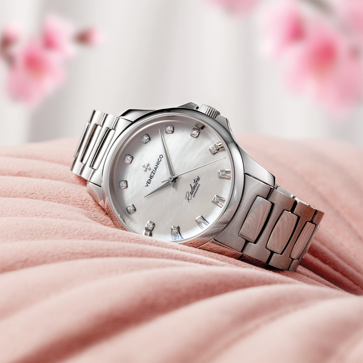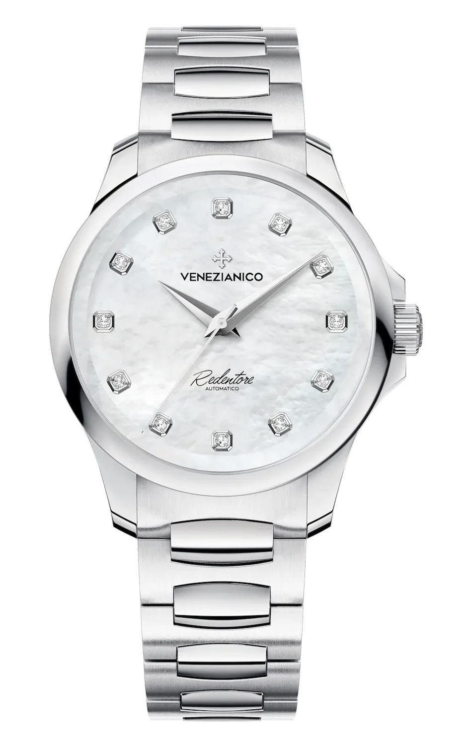 Redentore Diamanti jsou první hodinky značky Venezianico, které propojují funkčnost s estetikou ušlechtilého kamene. Ciferník z bílé perleti, zdobený diamantovými indexy, odkazuje na mistrovská díla palladiánského stylu inspirovaného Bazilikou del Redentore v Benátkách, která zdobí i dýnko. Každý z diamantů byl pečlivě vybrán, aby zajistil maximální třpyt a dokonalou barevnou gradaci, což činí tento model nejcennějším v kolekci Venezianico. Ke každým hodinkám je navíc přiložen certifikát pravosti, potvrzující jedinečnost použitých ozdob.