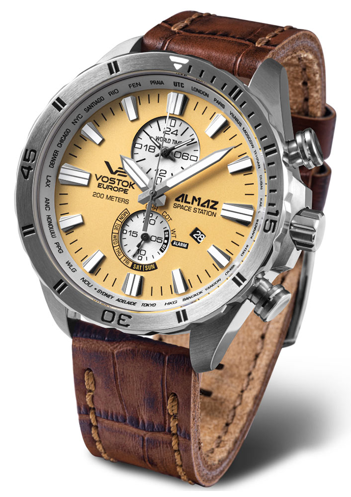 Elegantní sportovní hodinky Almaz Space Station jsou poháněny pokročilým mechanismem S.Epson YM8J Quartz, který nabízí širokou škálu funkcí ideálních jak pro každodenní použití, tak pro extrémní výzvy. Kromě standardních ukazatelů hodin, minut a sekund má tento mechanismus funkci světového času s možností výběru různých časových pásem pomocí vnitřního kroužku. Dále jsou vybaveny praktickým 24hodinovým zvukovým alarmem, který umožňuje nastavení jednoho alarmu na vybranou hodinu během dne, a 24hodinovým chronografem, který nabízí přesné měření času do 24 hodin s přesností na 1/20 sekundy. Tato pokročilá funkce je velmi užitečná při sportovních aktivitách nebo přesném měření času v každodenním životě. Křemenný časoměřič má také 24hodinový ukazatel a věčný kalendář, což dále zvyšuje jeho všestrannost a užitečnost.