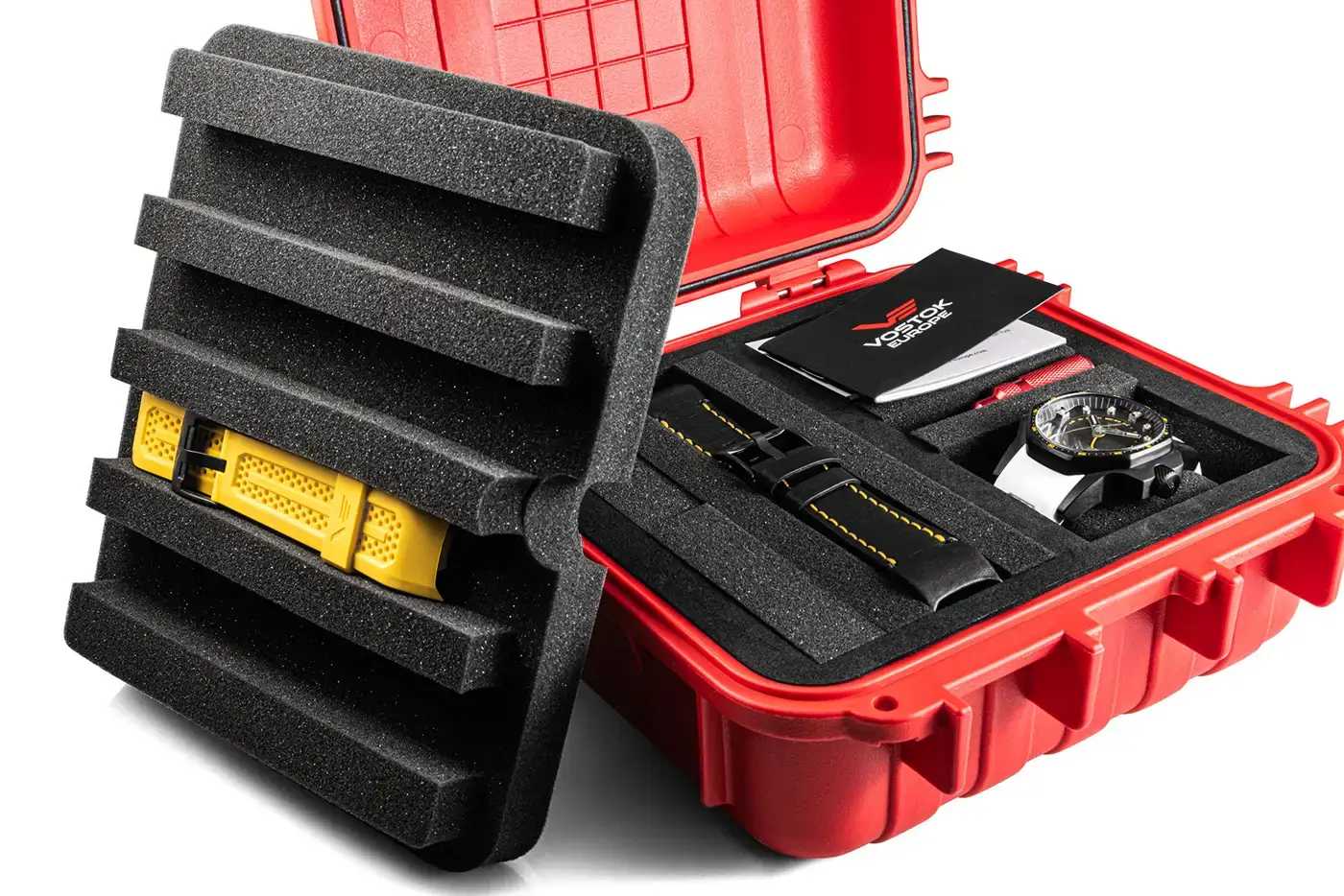 Pohodlí při nošení zajišťují dva dodávané řemínky – klasický hnědý kožený a sportovní silikonový s ventilačními otvory pro optimální cirkulaci vzduchu. Pánské hodinky s vyměnitelnými řemínky jsou dodávány v odolném, vodotěsném a nárazuvzdorném pouzdře Red VE DryBox XL, které lze využít jako sběratelskou krabičku na čtyři hodinky. Model Atomic Age Fermi Automatic GMT je limitovaná edice 3000 kusů s jedinečným číslem na boku pouzdra, což z něj činí nejen precizní nástroj, ale také exkluzivní doplněk pro nadšence do hodinařiny a vědecké historie.