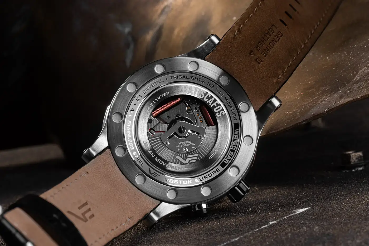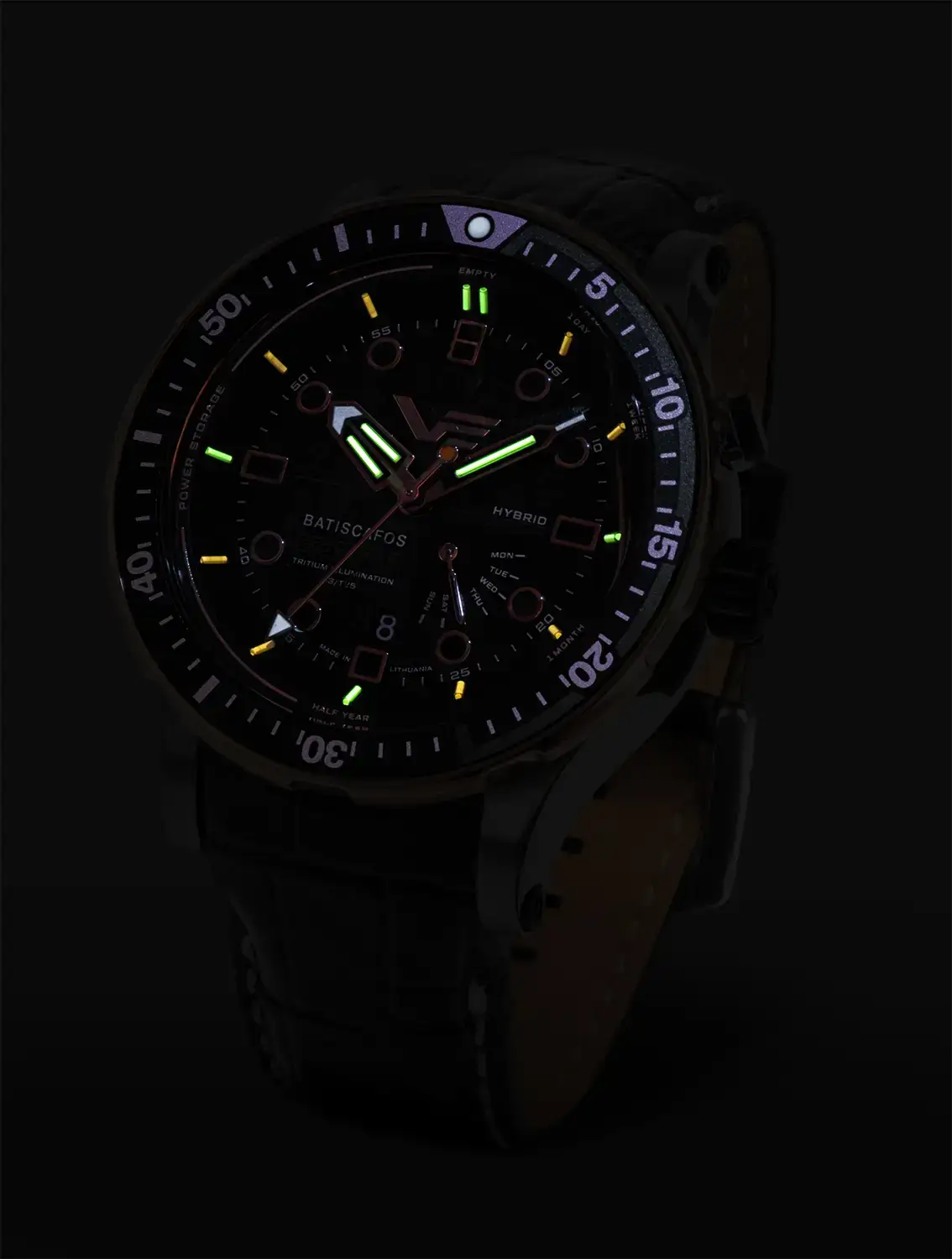 Tyto limitované hodinky s tritiem v počtu 3000 číslovaných kusů jsou dodávány v nárazu a vodě odolném polykarbonátovém kufříku VE DryBox, který obsahuje dva řemínky – kožený a silikonový – jež lze snadno přizpůsobit příležitosti. Jde o nástroj vytvořený s ohledem na extrémní výzvy, který se stejně dobře uplatní i v každodenním stylu, podtrhující individualitu a nezdolný charakter svého majitele. Vostok Europe Batiscafos Hybrid Limited Edition nejsou jen pánské hodinky v dárkové sadě – jsou manifestem připravenosti na vše neznámé.