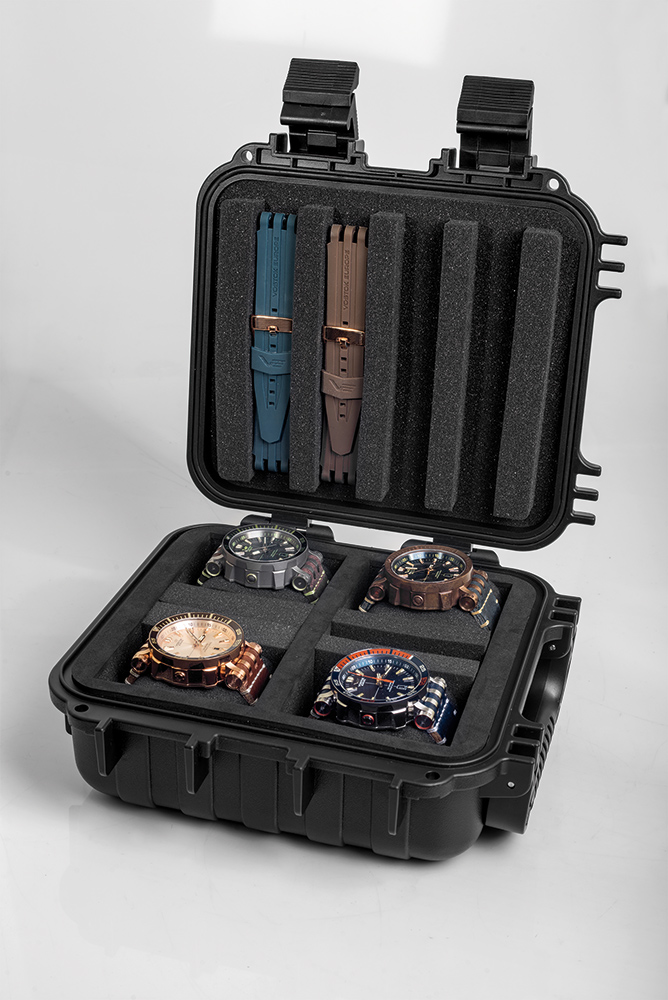Tyto velké hodinky z kolekce Energia Rocket se vyznačují vodotěsností do 300 metrů/30 ATM/30 bar a impozantním průměrem 48 mm. Jsou vybaveny přesným automatickým strojkem TMI NH34 a mnoha unikátními funkcemi, jako je heliový ventil, který se aktivuje při kritickém rozdílu tlaků, což je velmi užitečné pro potápěče. Dále mají tyto diver hodinky 60-minutový bezel rotující v jednom směru. Hluboko usazený ciferník chrání tvrzené minerální sklo K1 s antireflexní vrstvou o tloušťce 3,5 mm, které je odolné vůči poškrábání i nárazům. Na zadní straně pevného pouzdra vyrobeného z odolné a antialergické oceli 316L je šroubovací průhledné víčko, které odhaluje japonský automatický strojek.