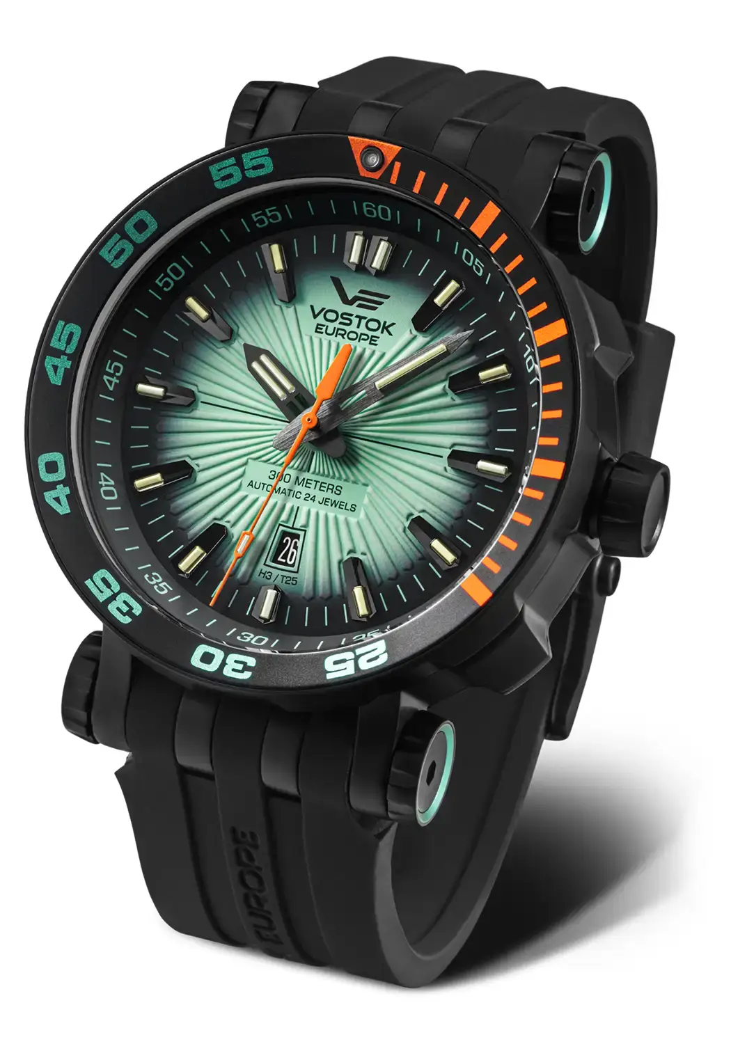 Tento velký hodinky z kolekce Energia Rocket se vyznačují vodotěsností až do 300 metrů/30 ATM/30 bar a impozantním průměrem 48 mm. Jsou vybaveny přesným automatickým strojkem TMI NH35A a mnoha unikátními funkcemi, jako je heliový ventil, který se spustí při kritickém rozdílu tlaků, což je velmi užitečné pro potápěče. Navíc, tyto potápěčské hodinky mají 60minutovou jednosměrně otočnou lunetu. Hluboce zapuštěný, gradovaný ciferník je chráněn tvrzeným minerálním sklem K1 s antireflexní vrstvou o tloušťce 3,5 mm, které je odolné jak proti poškrábání, tak proti nárazům. Na zadní straně pevného pouzdra vyrobeného z odolné a antialergické ušlechtilé oceli 316L s černým PVD povlakem se nachází šroubovací, průhledné dýnko, které odhaluje japonský automatický strojek.