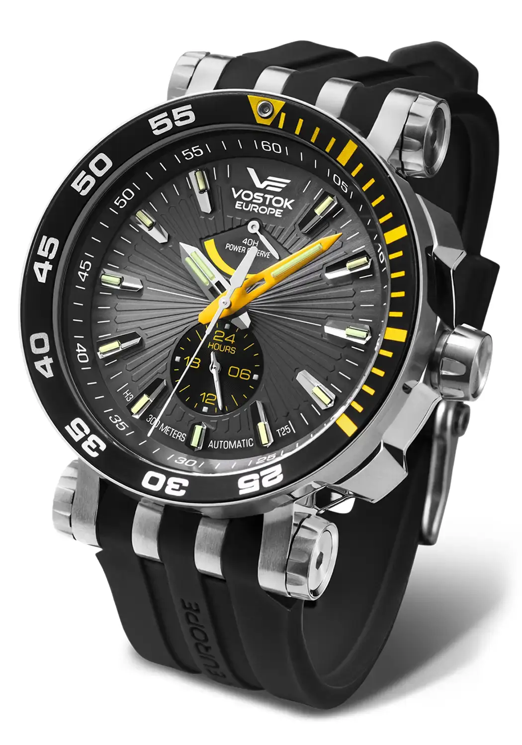Pánské hodinky Vostok Europe Energia Rocket YN84-575A539 jsou modelem inspirovaným legendárním programem Energia Space, jehož centrálním prvkem byla raketa Energia – nejvýkonnější nosná raketa v historii a univerzální raketový systém. Jeho masivní pouzdro o průměru 48 mm je vyrobeno z nejkvalitnější nerezové oceli 316L a celek chrání 3,5mm sklo K1 s antireflexní vrstvou, které zajišťuje vynikající odolnost proti poškrábání i nárazům. Díky preciznímu japonskému automatickému strojku S.Epson YN84 s indikátorem rezervy chodu a funkcí 24hodinového číselníku má uživatel plnou kontrolu nad časem – jak při každodenním používání, tak při expedicích do nejnáročnějších podmínek. Navíc hodinky s héliovým ventilem, otočnou potápěčskou lunetou, šroubovací korunkou a šroubovacím dýnkem s vodotěsností až 300 metrů splní očekávání milovníků potápění a hlubinného průzkumu.