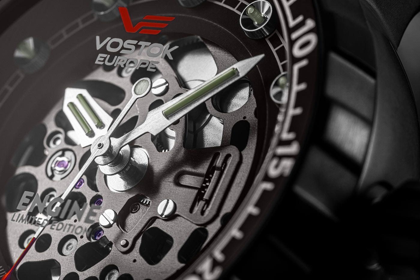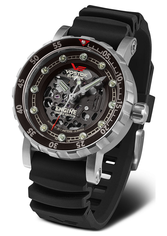 Vostok Europe Engine Skeleton NH72-571A646 je výjimečné hodinky, které jako první z řady "Engine" nabízejí skeletonizovaný ciferník, umožňující sledovat precizně provedené ozubené mechanismy, vyvážení a další pohyblivé části mechanických hodinek. Díky průhledné konstrukci ciferníku lze obdivovat práci vnitřních komponentů, což nejen přidává estetickou hodnotu, ale také ukazuje technickou vyspělost hodinek s viditelným mechanismem.