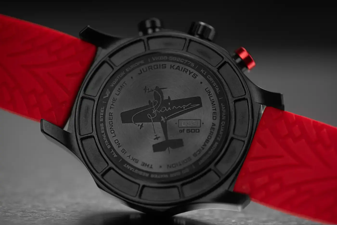 Limitované pánské pilotní hodinky Vostok Europe Expedition Jurgis Kairys Unlimited Aerobatics VK68-592C775 jsou speciální edicí vytvořenou na počest litevského mistra světa v neomezené akrobatickém létání, Jurgise Kairyse.