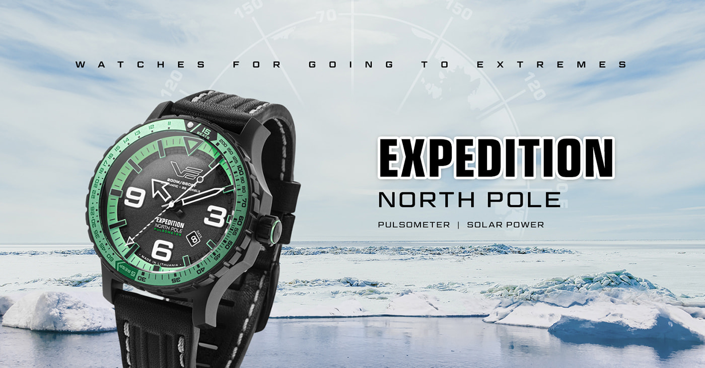 Navržené speciálně pro extrémní podmínky, tyto automatické hodinky poháněné japonským automatickým strojkem Miyota YN55 kombinují spolehlivost s elegantním designem, ideálním pro použití v izolovaných a drsných podmínkách Arktidy. Intenzivní barvy tohoto modelu dokonale kontrastují s drsnou, bílou krajinou. Pevné, kartáčované pouzdro o průměru 47 mm, vyrobené z vysoce kvalitní oceli 316L a pokryté černým PVD povlakem, zajišťuje nejen sofistikovaný vzhled, ale také ochranu proti nárazům a vodotěsnost do 200 metrů. Na zadní straně je šroubovací víčko s vygravírovanou mapou Severního pólu. Luminescenční indexy a skeletové ručičky na vícevrstvém reliéfním ciferníku, chráněné tvrzeným minerálním sklem K1 o tloušťce 4,00 mm, poskytují vynikající viditelnost za jakýchkoli světelných podmínek. Prodloužená sekundová ručička umožňuje přesné využití stupnic umístěných na lunetě.