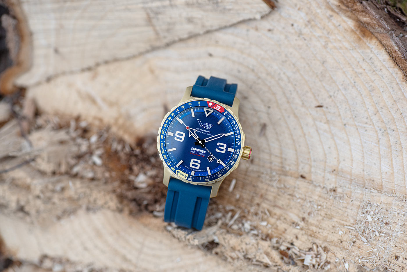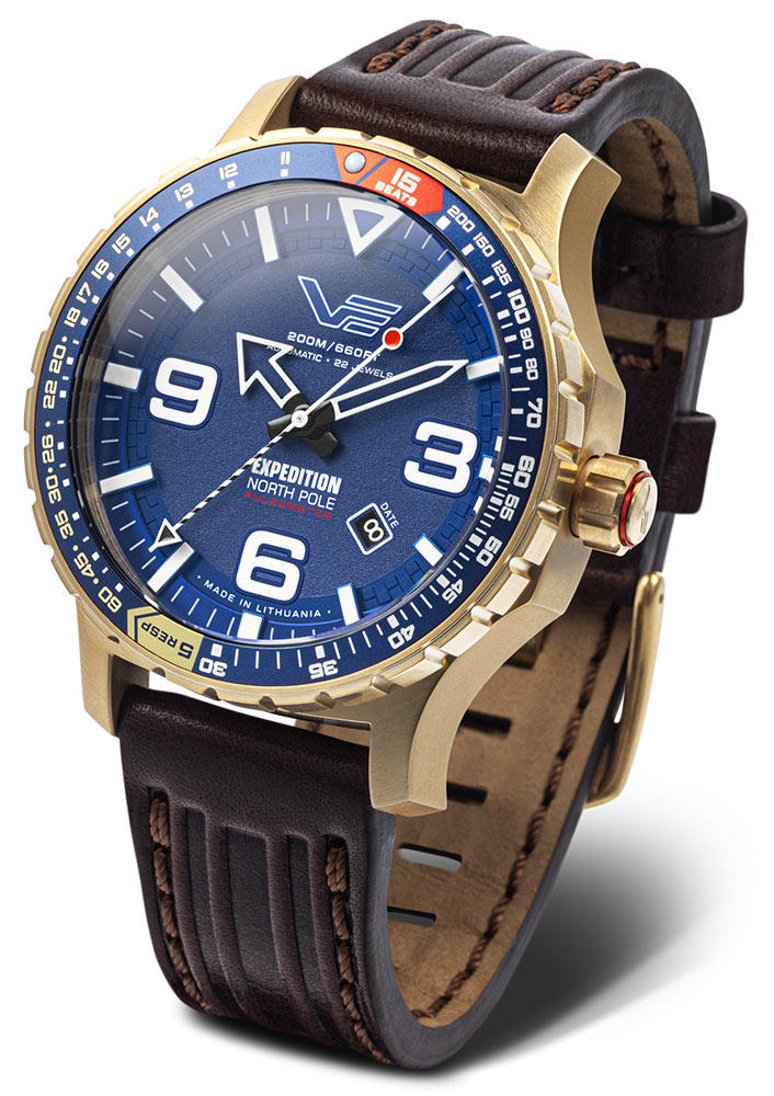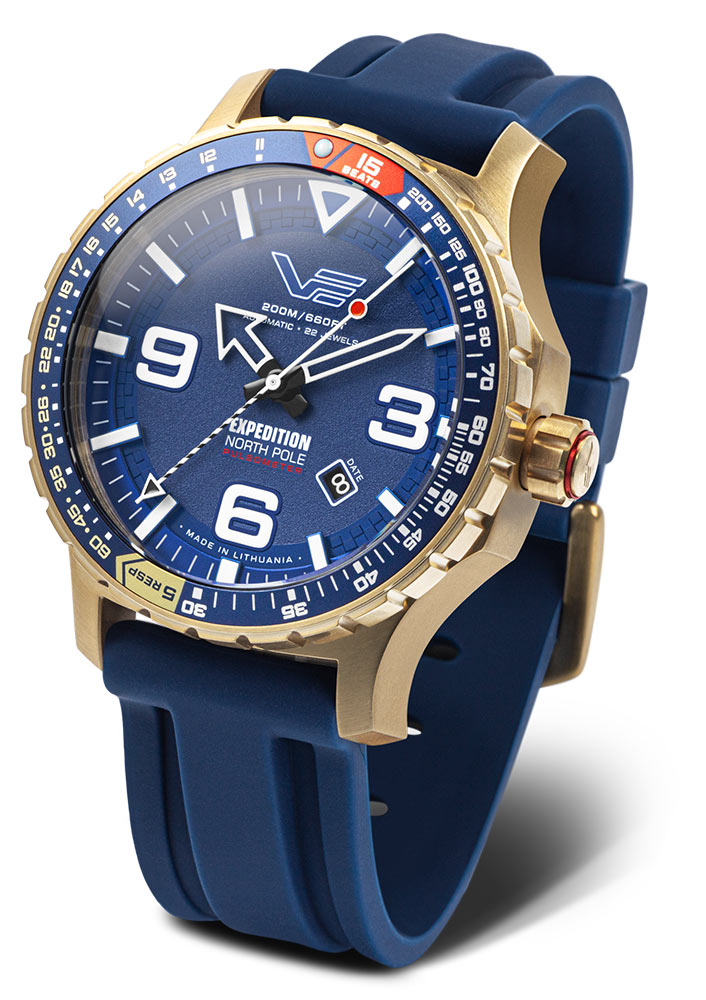 Navržený speciálně pro extrémní podmínky, tento automatický hodinky poháněný japonským automatickým mechanismem Miyota YN55 spojuje spolehlivost s elegantním designem, ideální pro použití v izolovaných a drsných podmínkách Arktidy. Intenzivní barvy tohoto modelu perfektně kontrastují s drsným, bílým krajinou. Solidní, kartáčované pouzdro o průměru 47 mm, vyrobené z vysoce kvalitní nerezové oceli 316L a pokryté PVD povlakem v zlatém odstínu, zajišťuje nejen rafinovaný vzhled, ale také ochranu proti nárazům a vodotěsnost až do 200 metrů. Na jejím zádech je šroubovatelný kryt s vygravírovanou mapou Severního pólu. Luminescenční indexy a skeletové ručičky na vrstveném ciferníku s reliefovým povrchem, chráněné tvrzeným minerálním sklem K1 o tloušťce 4,00 mm, zajišťují vynikající čitelnost za všech světelných podmínek.