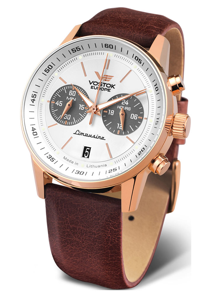 Klasické hodinky na hnědém koženém řemínku Vostok Europe Gaz-14 Limousine jsou vybaveny japonským křemenným strojkem Miyota TMI VK64, který zajišťuje nejen přesný čas, ale také vysokou spolehlivost. Mezi jeho funkce patří displej data, 24hodinový čas a chronograf.