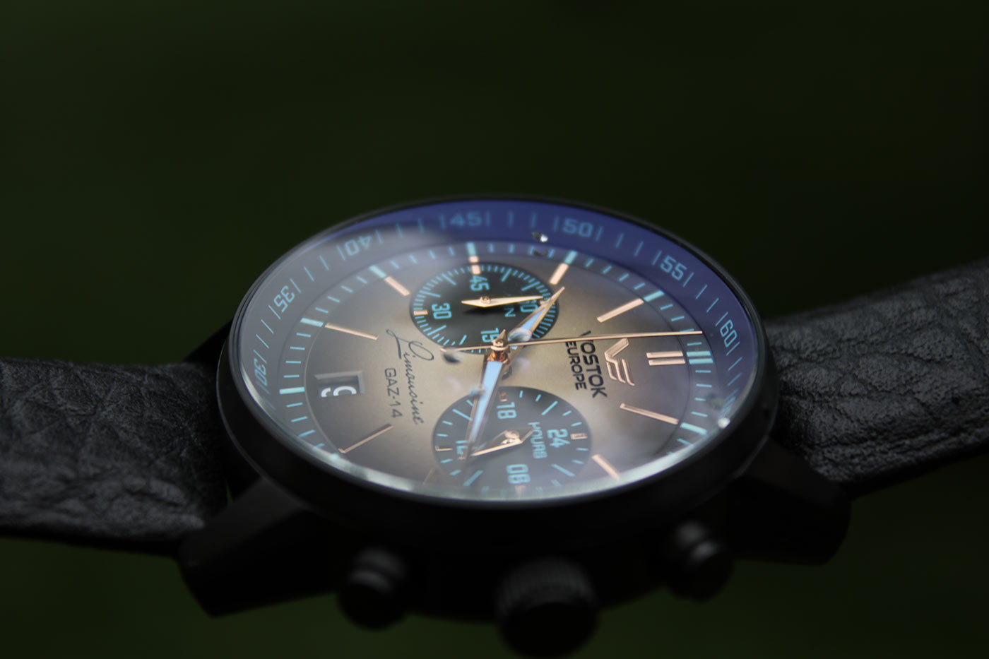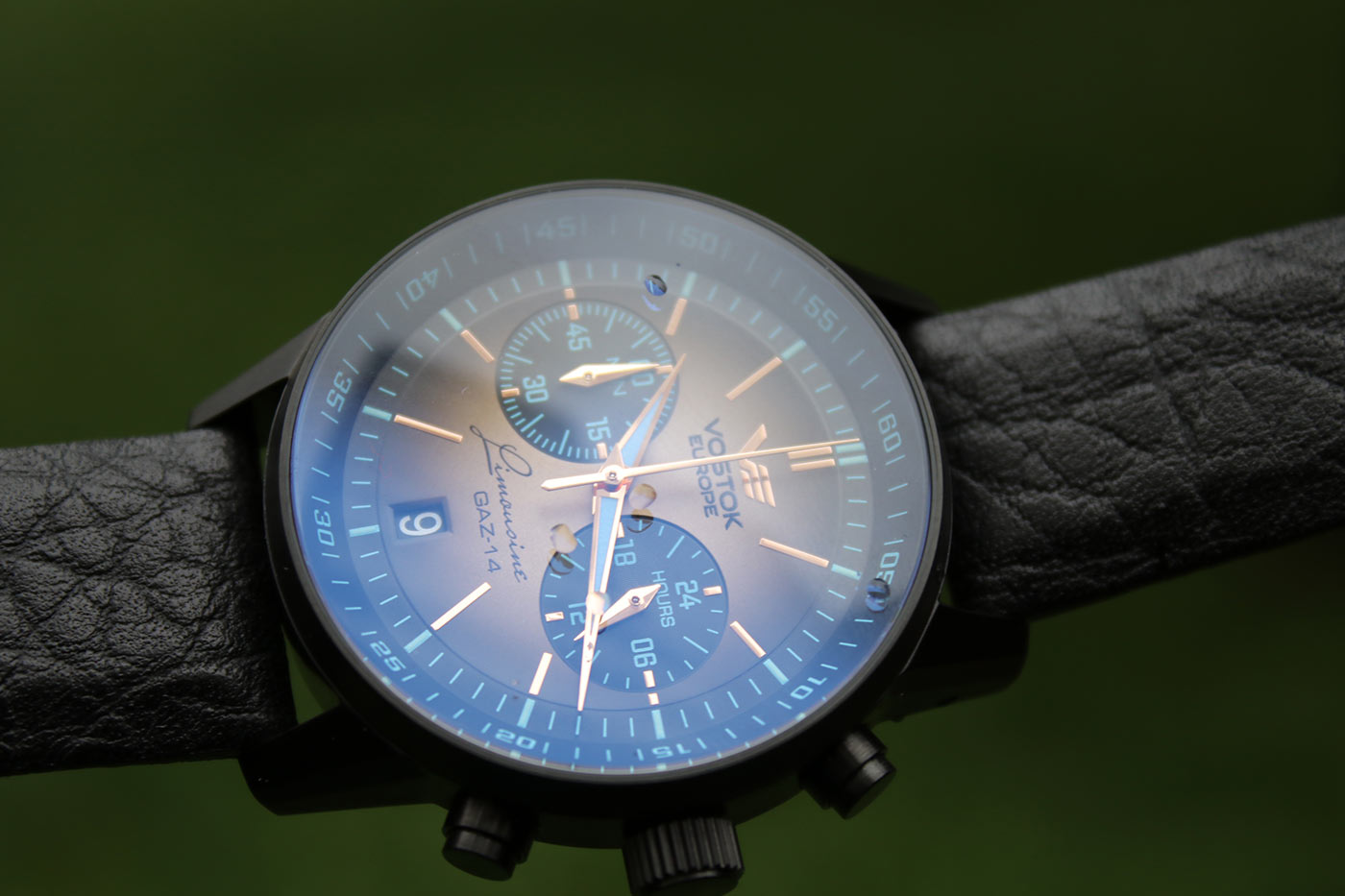 Klasické hodinky na černém koženém řemínku Vostok Europe Gaz-14 Limousine jsou vybaveny japonským křemenným strojkem Miyota TMI VK64, který zajišťuje nejen přesný čas, ale také vysokou spolehlivost. Mezi jeho funkce patří displej data, 24hodinový čas a chronograf.