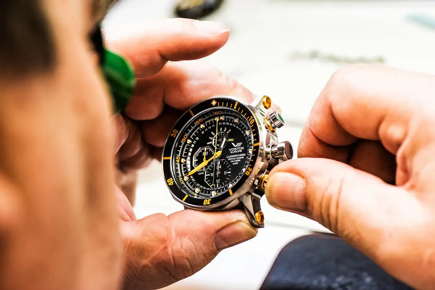 Ciferník tohoto modelu je skutečným technologickým mistrovským dílem – jeho vícevrstvá konstrukce je chráněna tvrzeným sklem K1 o působivé tloušťce 3,5 mm, což zajišťuje maximální odolnost proti poškrábání a nárazům. Největší inovací těchto hodinek je použití 13 švýcarských tritiových trubic na ciferníku a 2 na ručičkách, což zaručuje vynikající čitelnost i v naprosté tmě. Na rozdíl od standardního podsvícení tritium nevyžaduje nabíjení slunečním světlem a udržuje nepřetržitý jas po dobu nejméně 10 let. Díky tomu jsou Vostok Europe Lunokhod-2 nejen spolehlivým měřicím nástrojem, ale také ideálním společníkem pro extrémní expedice – od podzemních výprav až po vesmírné mise. Dalším významným prvkem je průhledné dýnko, které odhaluje precizně zpracovaný mechanismus a dodává hodinkám exkluzivní charakter.